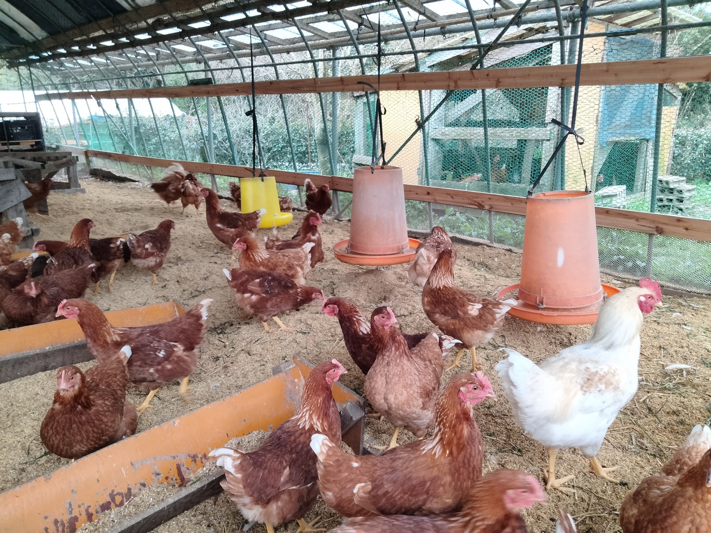 - 卵は国産飼料100%の、平飼い鶏の有精卵。レモン色の卵です。