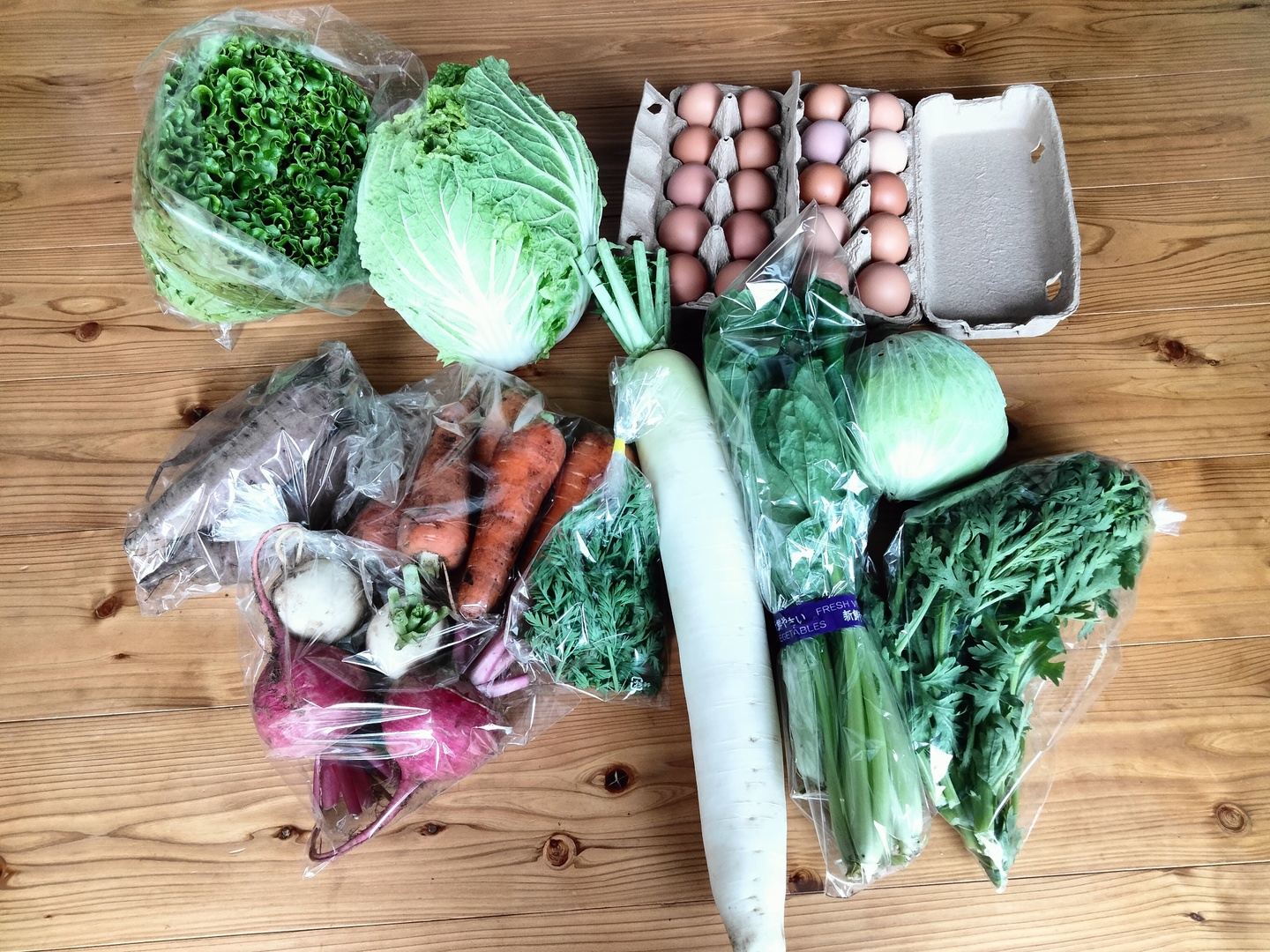 - 3 いろいろ育てている「百姓」だからこそ。3年2作で、微生物の力でゆっくり育てた野菜たち。「農家の家庭菜園のおすそ分け」的なセットを、お米や卵と一緒にお詰めしてお届けすることで、送料が割安となります。