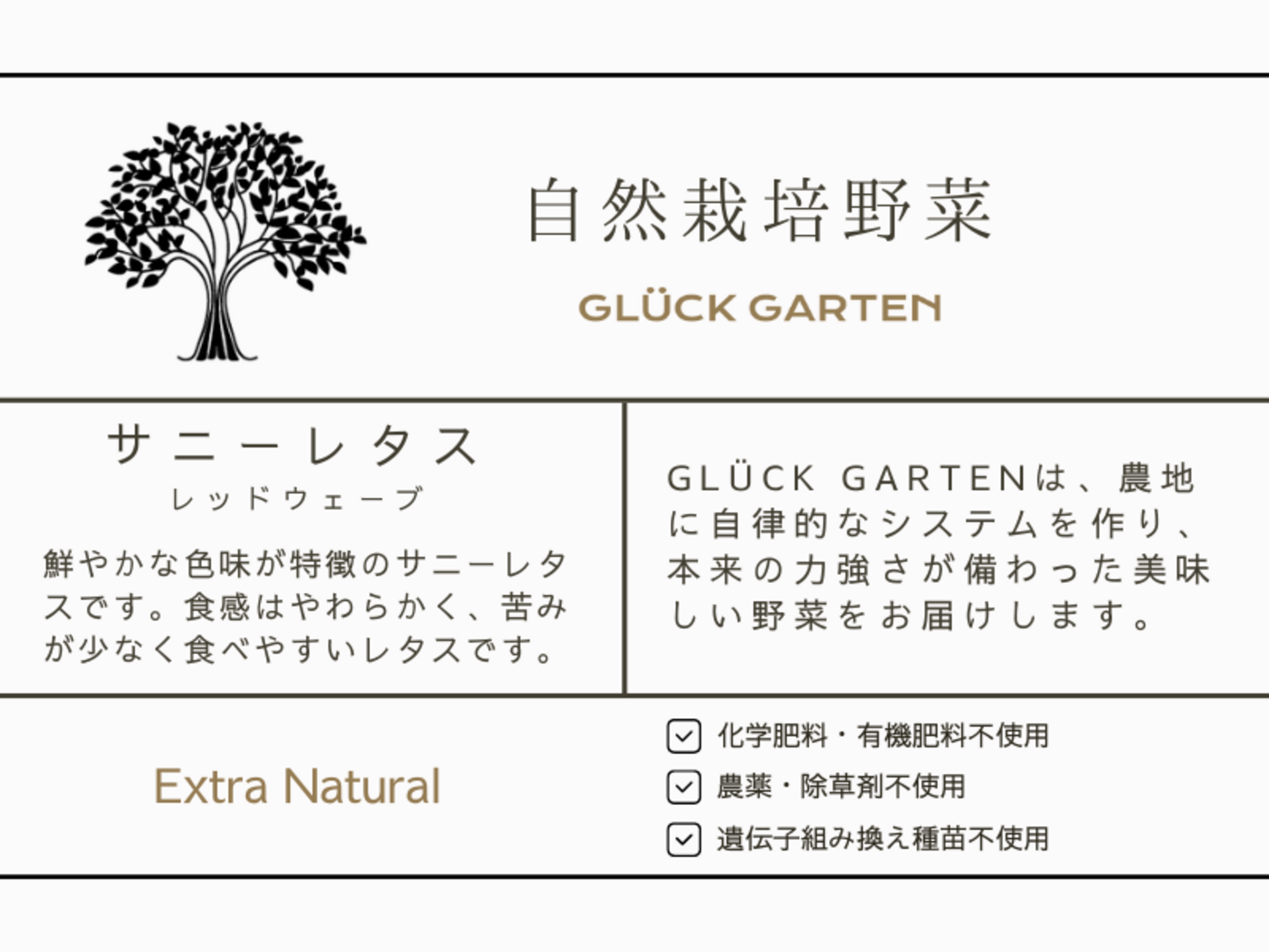 鮮やかな色味が特徴のサニーレタスです。食感はやわらかく、苦みが少なく食べやすいレタスです。それに加えて、自然栽培のサニーレタスは気持ちの良い歯ごたえと爽やかな甘みがあり、いくら食べても食べ飽きない美味しさです。