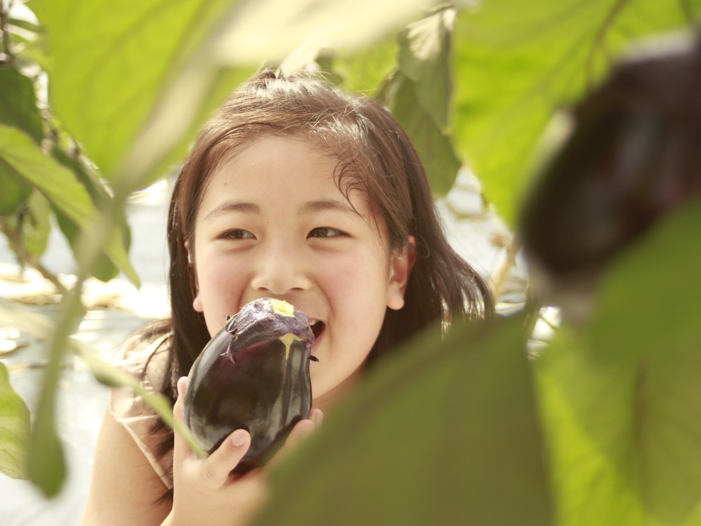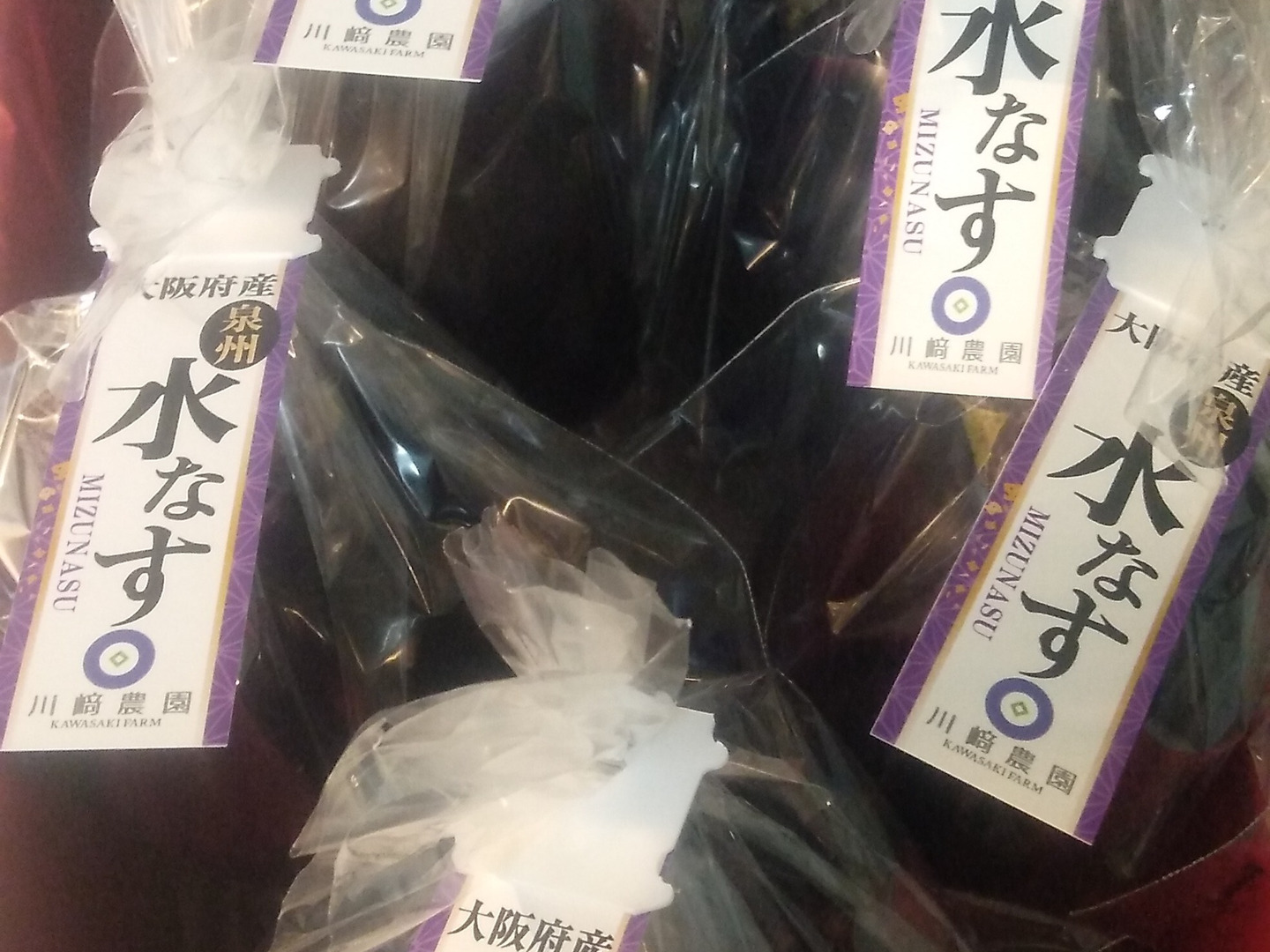2019年G20 oskaサミット晩餐会の2品目鱧と泉州水なすのお椀に、食材泉州水なすを提供した川崎農園の水なすです。
