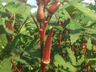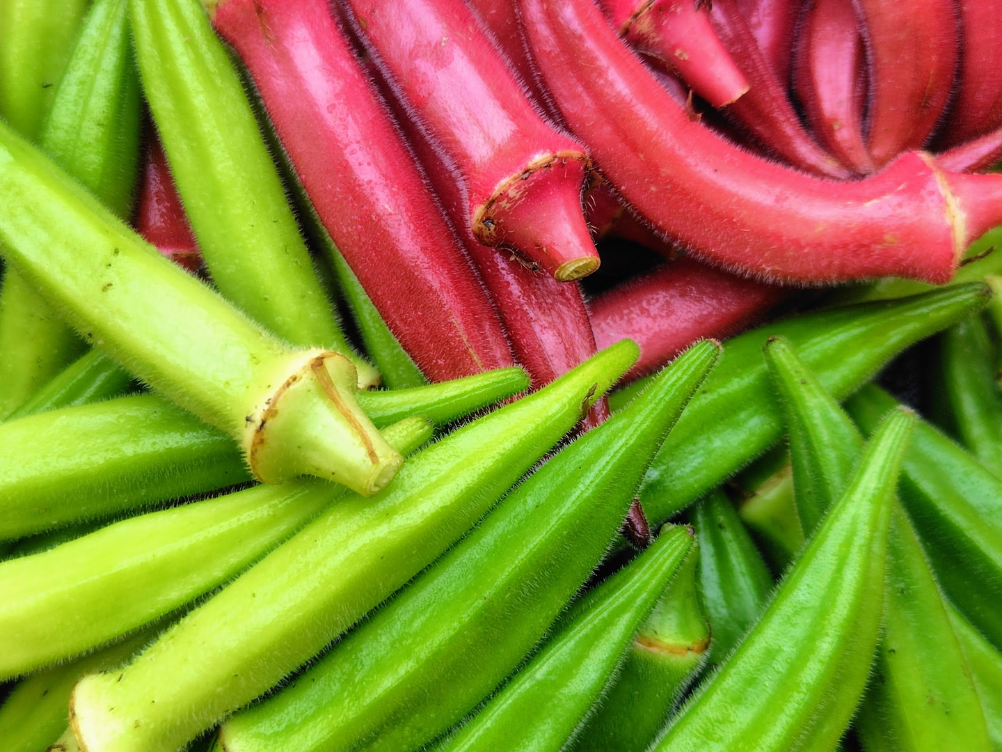 赤オクラの見た目の赤色はアントシアニンを含んでいるため。加熱すると薄グレーがかかった緑っぽくなりますので、ぜひ赤を活かしたお料理でお楽しみください!