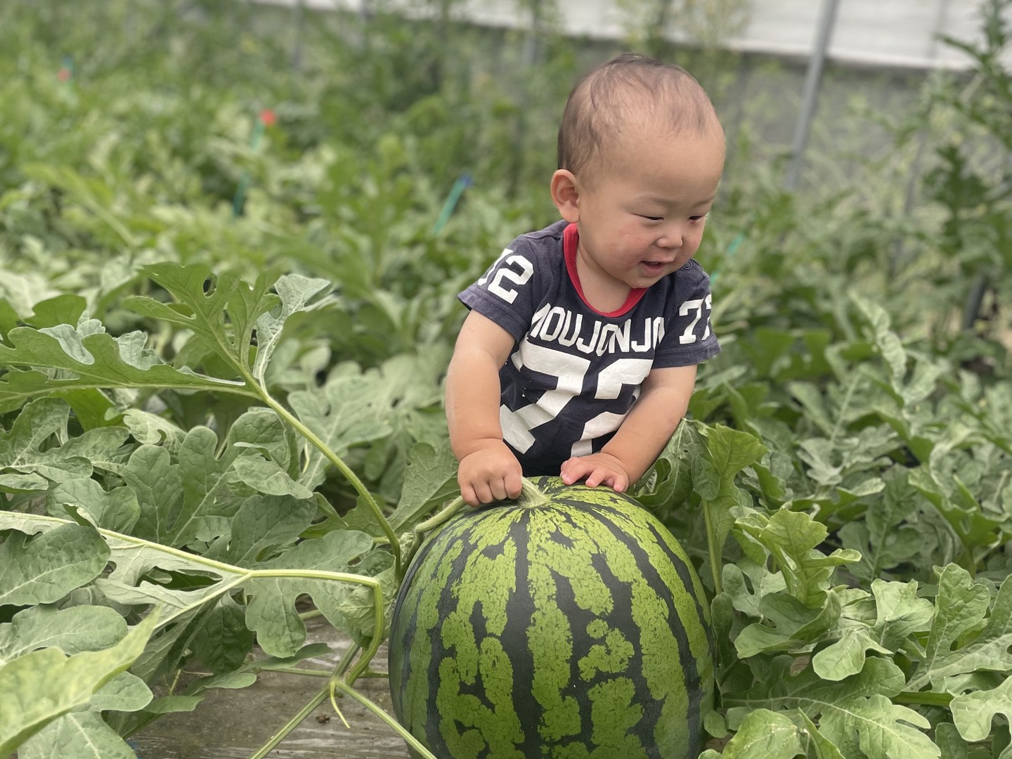 春に定植を迎え寒暖差を活かしジワジワと旨味を蓄えた初夏のスイカです。