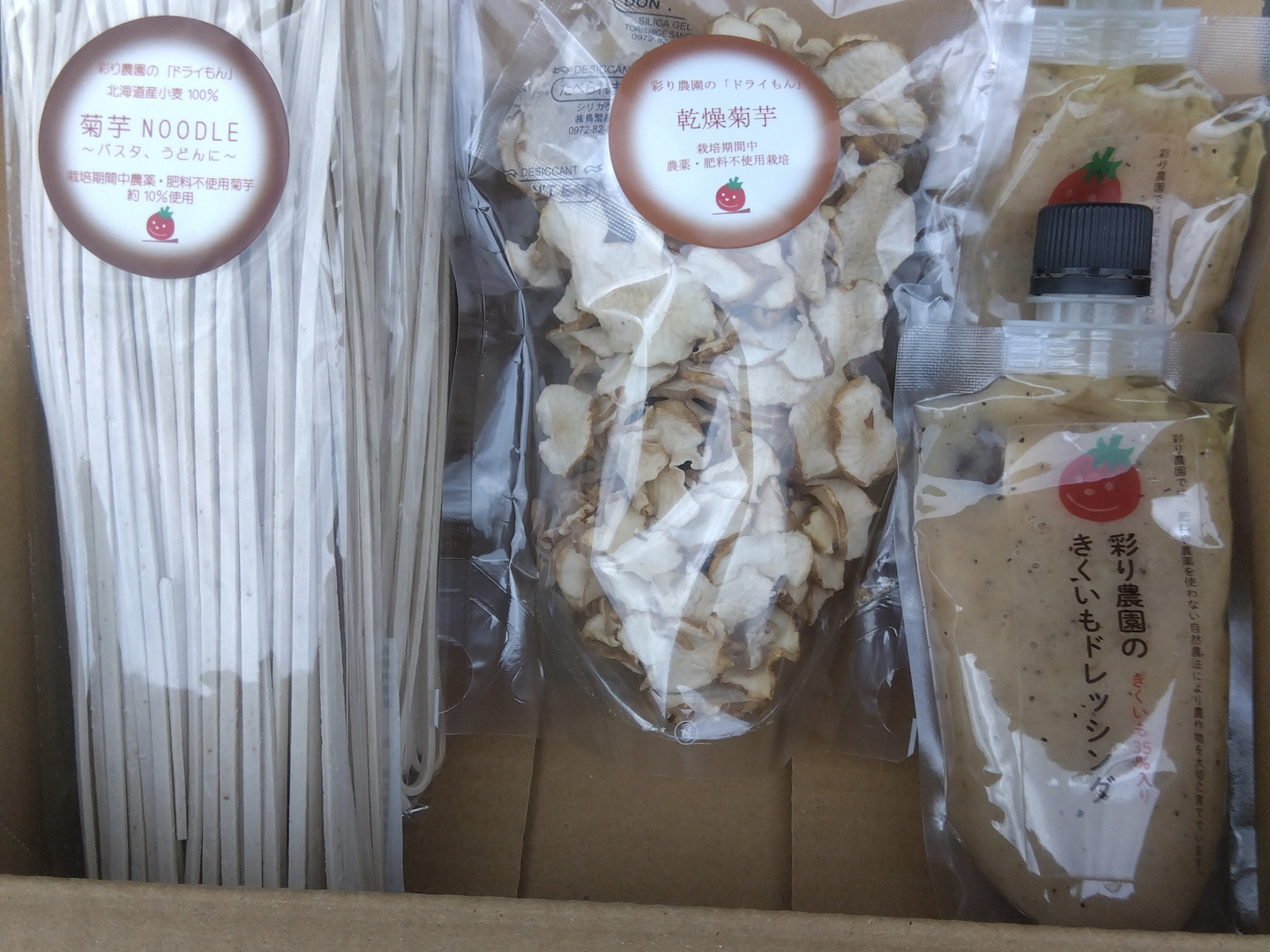 そんな時に「乾燥菊芋」「菊芋ドレッシング」と「菊芋ヌードル」のセットはいかがでしょうか?