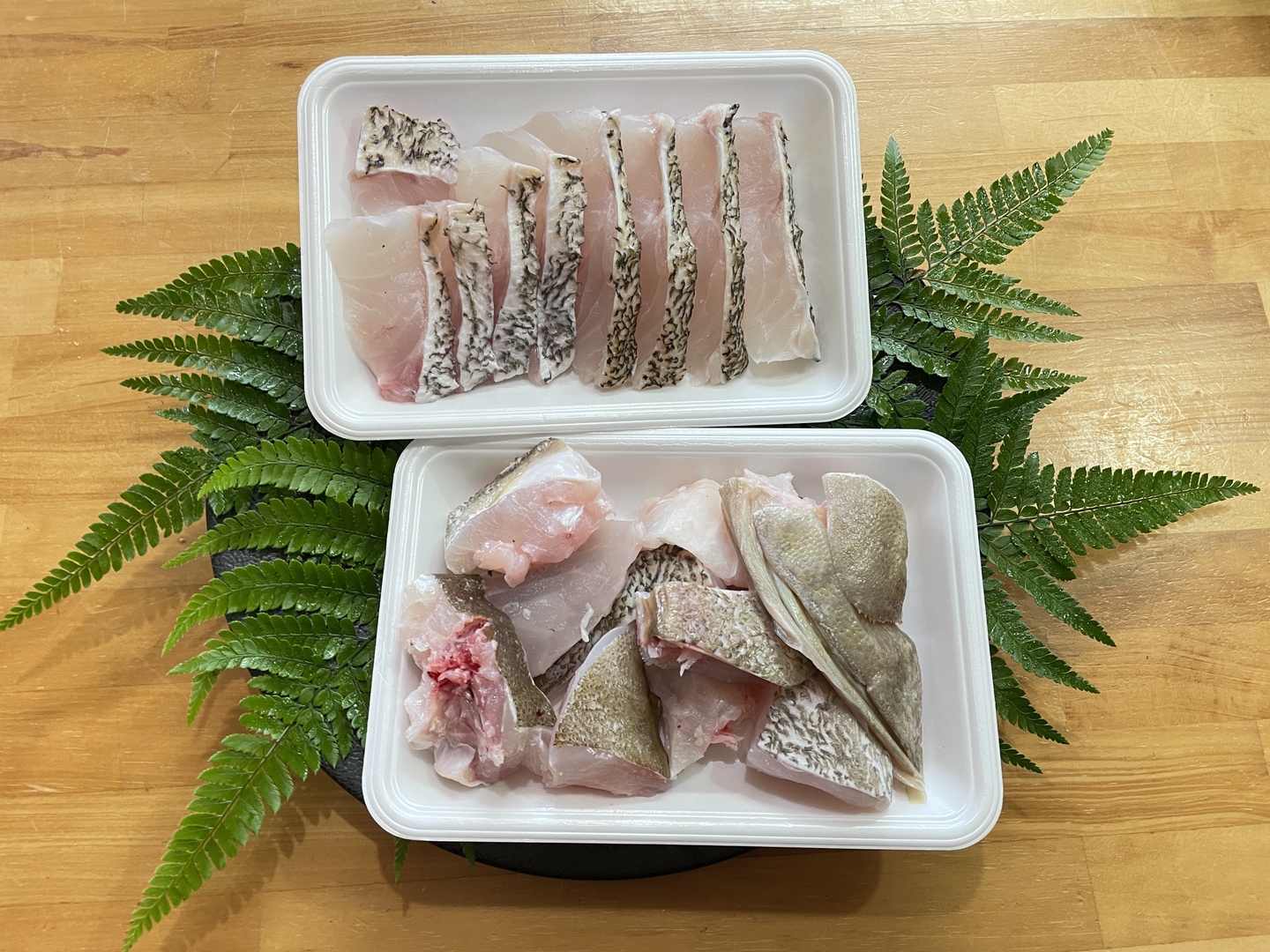 【松島産】クエ鍋用セット(約3人前)〈商品の内容〉 ・切り身(300g) ・骨頭(350g)