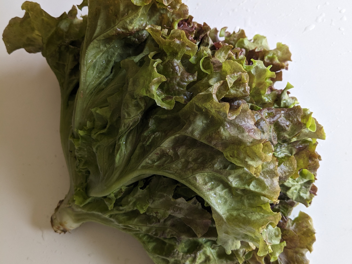 葉先が赤みを帯びてちぢれている非結球の葉レタスです。根元に近い部分の薄緑色と葉先の赤みコントラストが食卓を彩ってくれます。