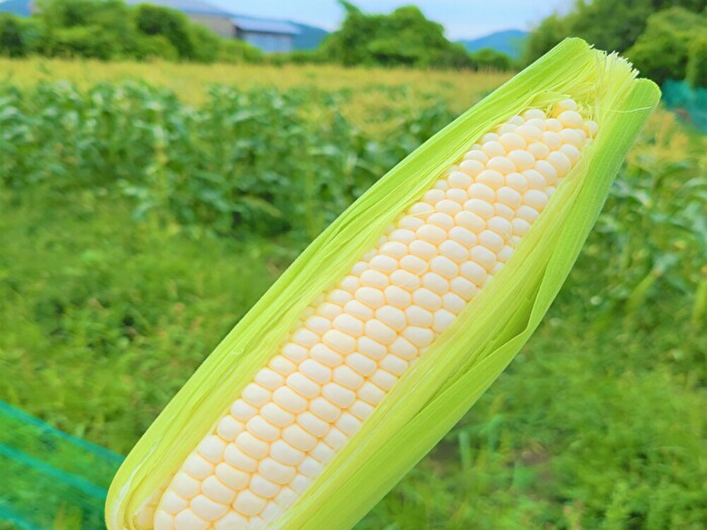 ホワイトコーンの収穫開始は7月上旬~中旬頃を予定していますが、天候や生育状況により前後することがございます。