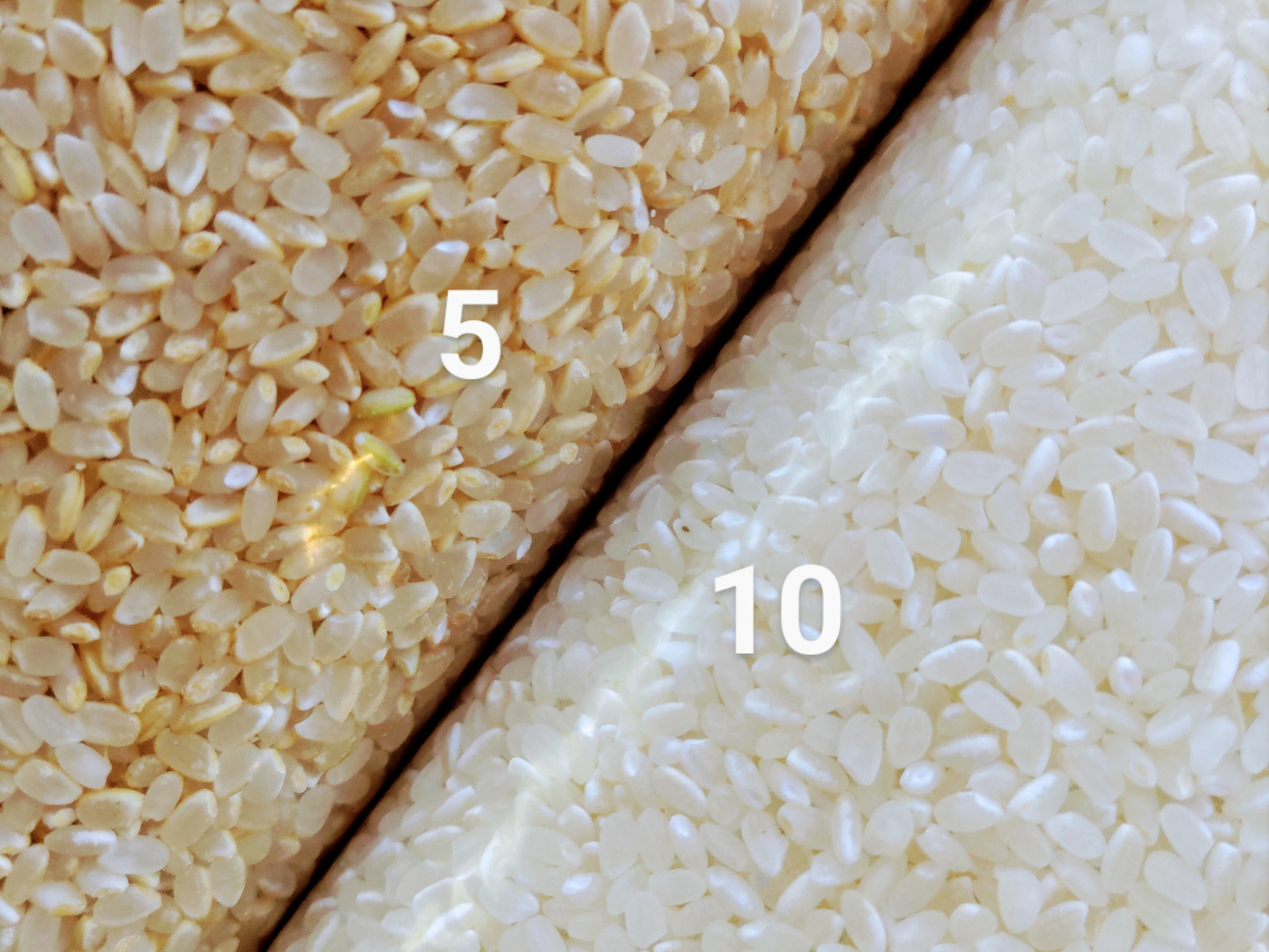発送日に精米、つきたての5分づき精米をお届けいたします。