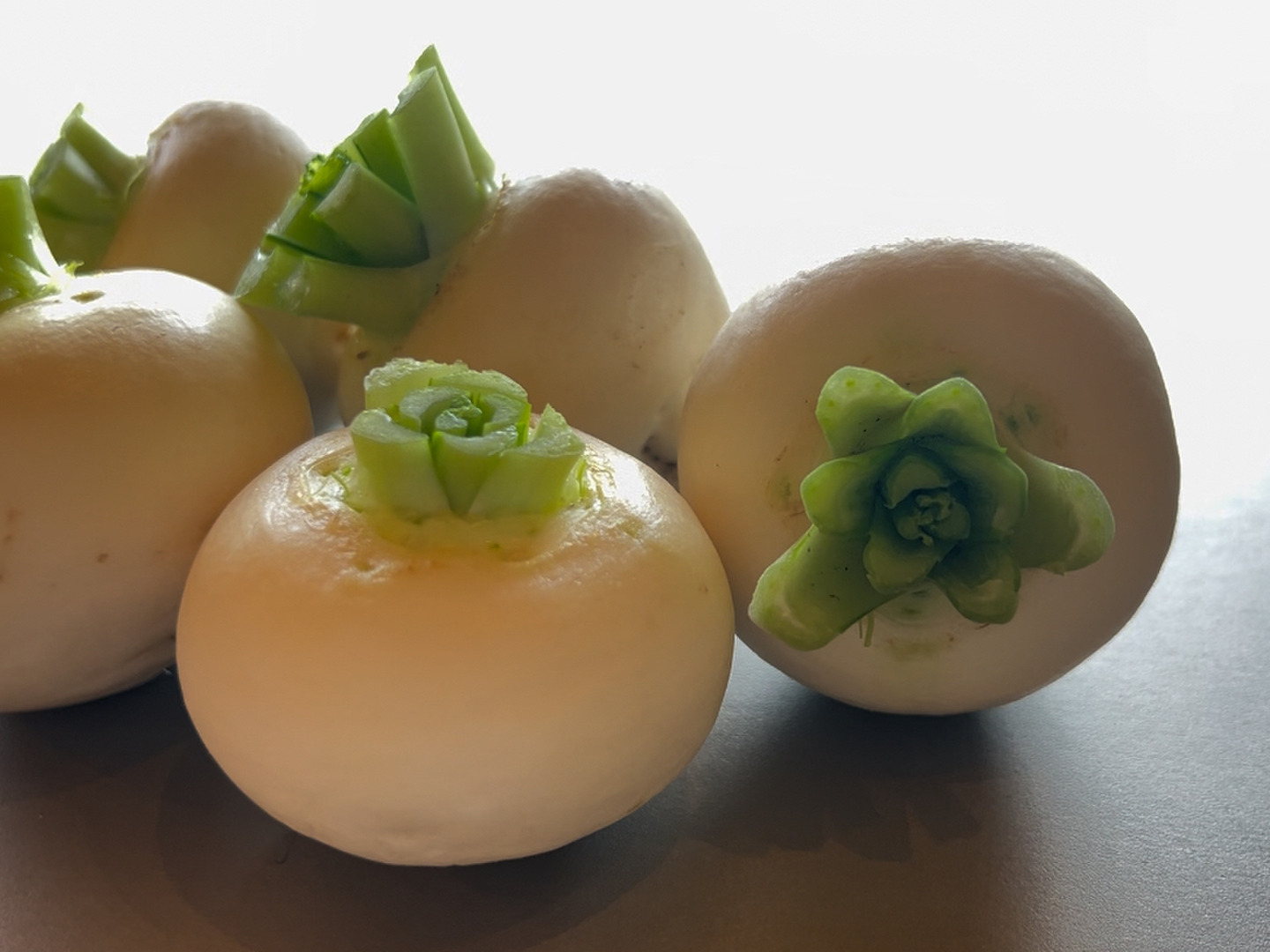 甘味が強くしっとりした質感で、みずみずしさが特徴の白い宝石のような小カブです。