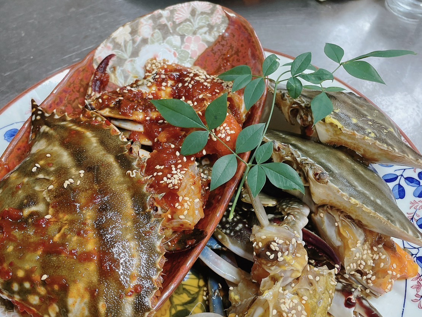 使用しているカニは有明海湯島産で、乙姫丸船長が毎日夜中に取ってきており、これ以上ない鮮度の良さ!と自負しております。ケジャンは、小さめのカニが主ですが乙姫丸では、小さいサイズから、特大サイズまでお楽しみ頂けます。もちろん、生きたカニを〆るところから始まりますので、魚もそうですが、〆てある物と、そのまま死んだ物では食感、味共に雲泥の差が出ます。ご注文頂いてから作るため少しお時間を頂きますが、手間暇を惜しまず加工した後、乙姫屋特製の醤油ダレに漬けます。ワタリガニの美味しさは残しつつ、最高のケジャンをお届けいたします。