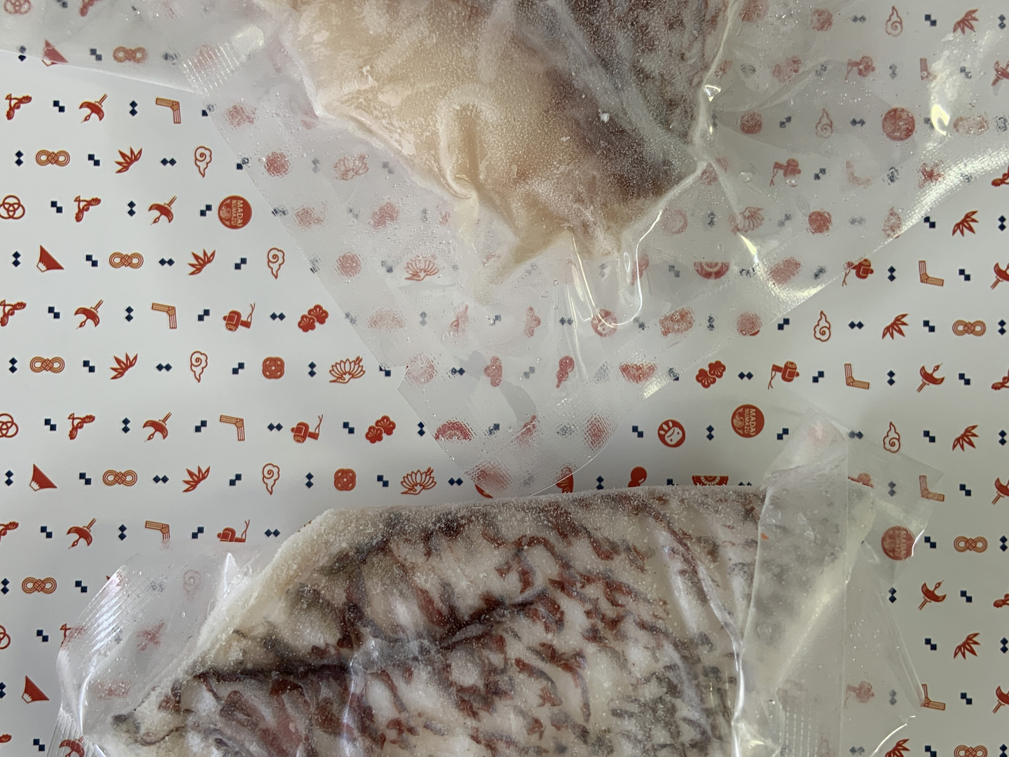 梱包時鯛の身を曲げたまま凍結してしまい、見た目がいびつですが