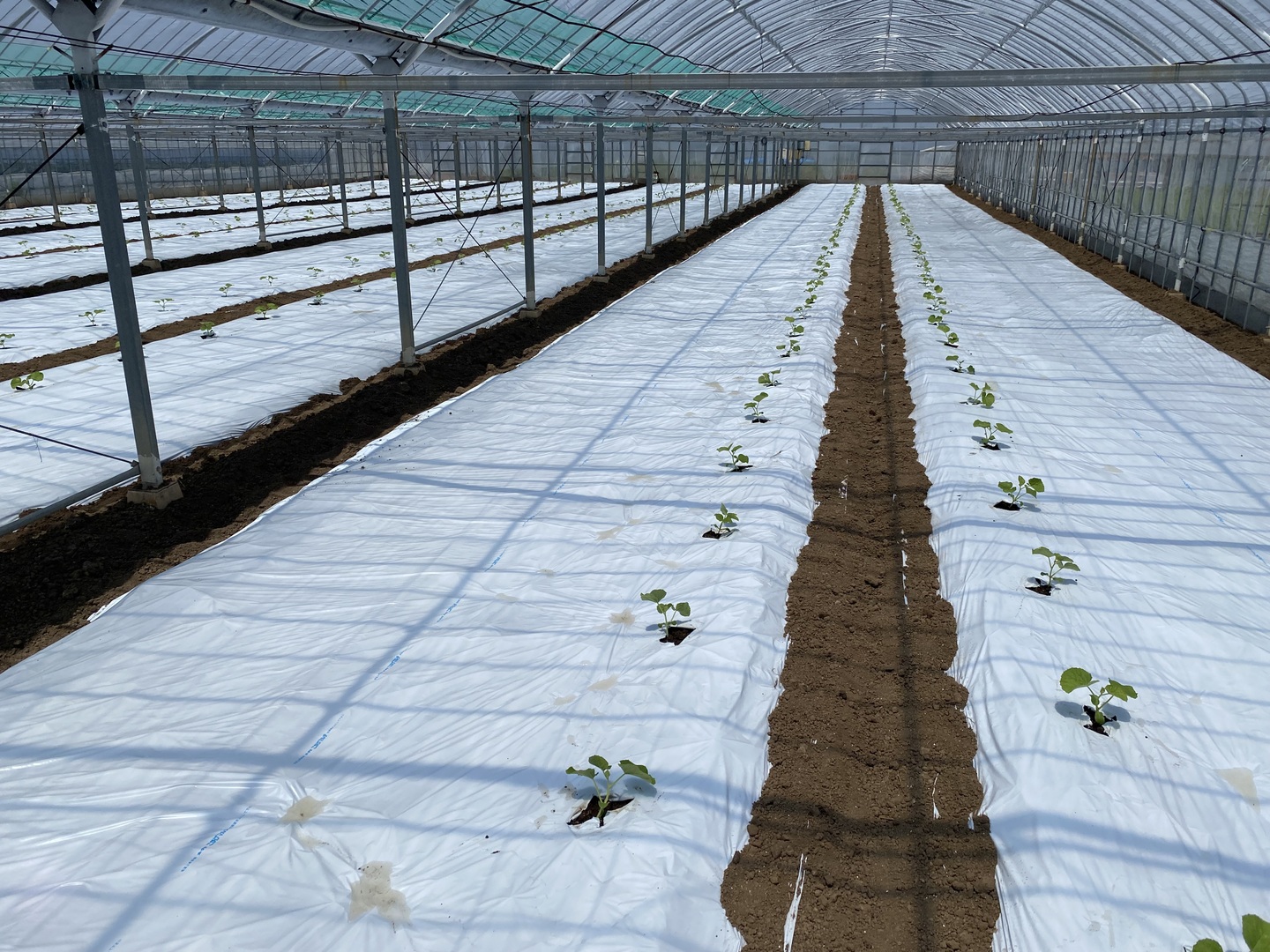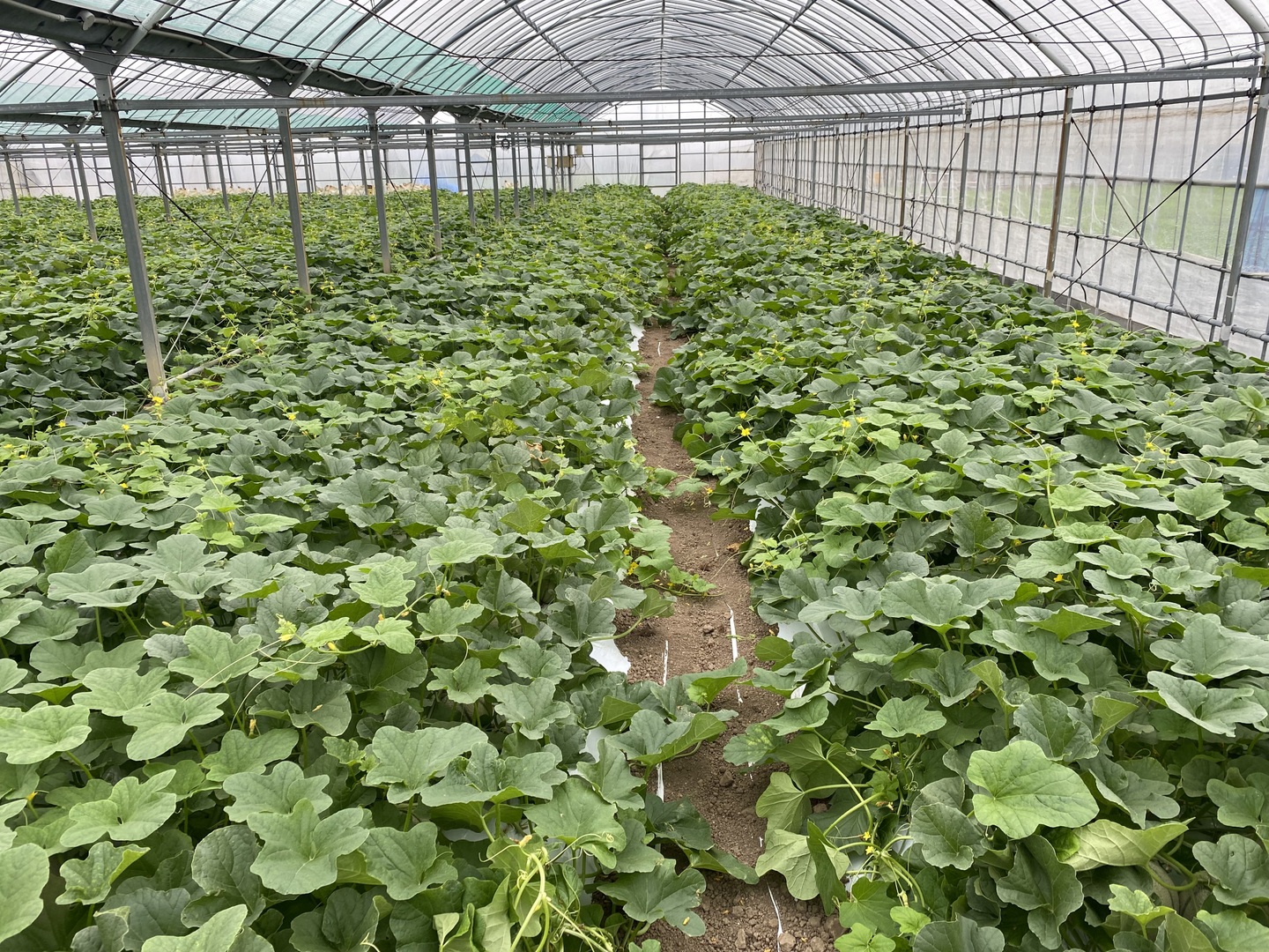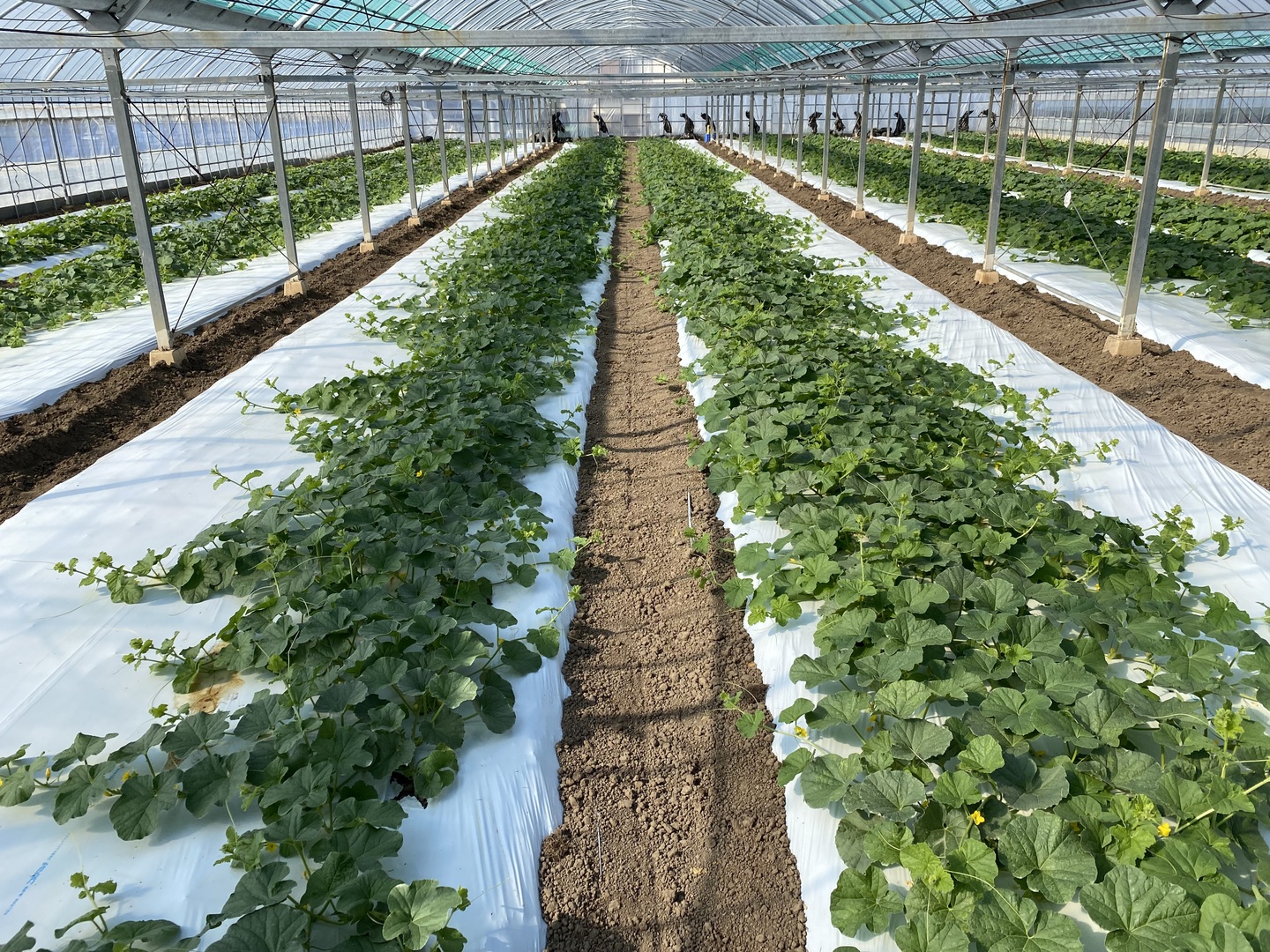 いちごを育てた畑は、もともと太陽の熱でじっくりと土壌を消毒し、微生物の働きを活かす特別な土づくりをしています。その豊かな土壌で育ったメロンは、ひと玉ひと玉がずっしりと大きく、果汁たっぷりのジューシーな味わいに仕上がりました。