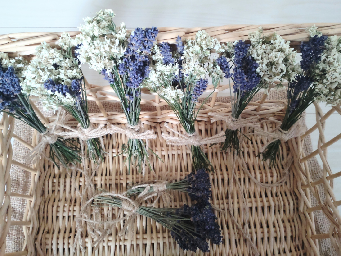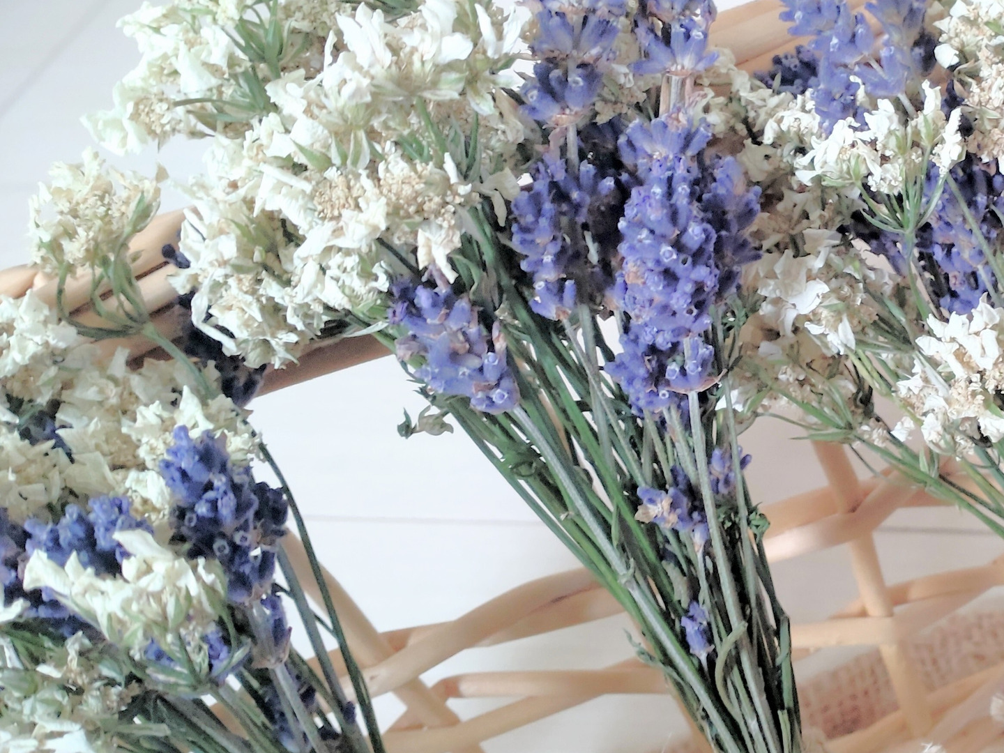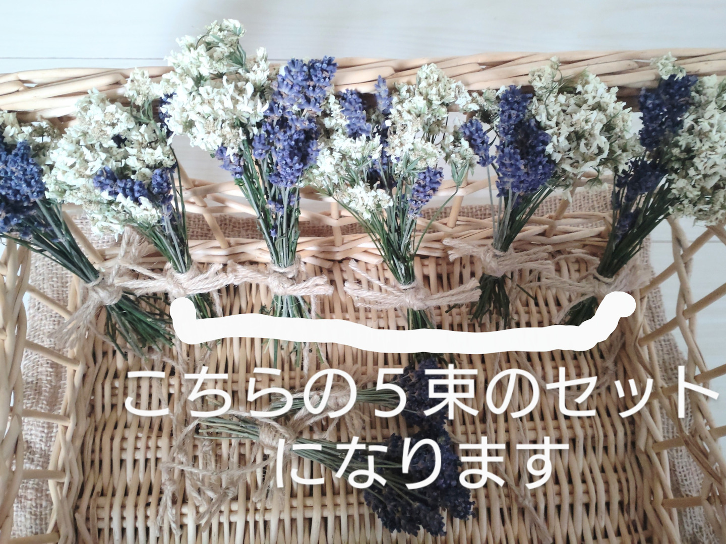 【単品☆🏣ゆうパック】ラベンダーとオルレアのミニサイズのドライフラワー❀5束セット❀現品限り☆長さ約15cm〜20cm❀吊り下げ用の麻ひも付き
