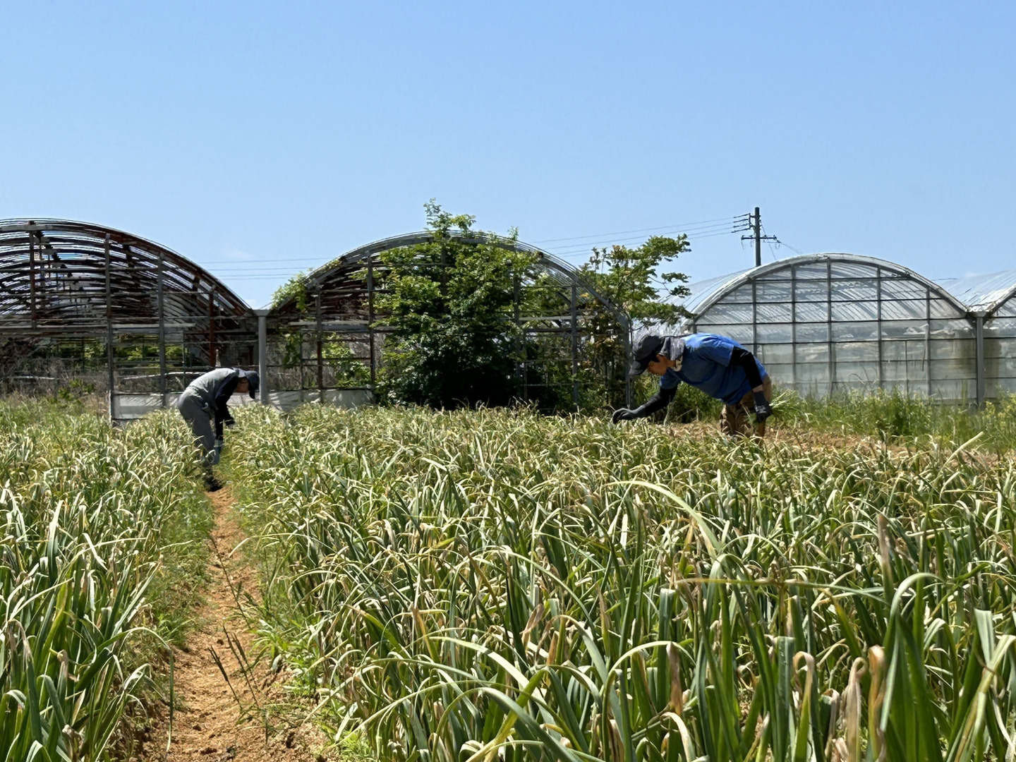 また、根がしっかりと呼吸できるよう、にんにく栽培では一般的なマルチ掛けをせず、雑草を一本一本人の手で抜いて育てています。