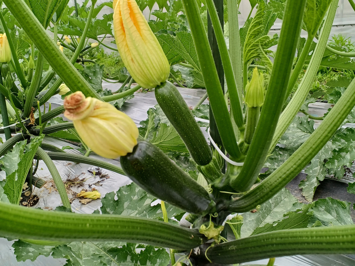 採れたてをすぐにまとめて袋詰めしますのでツヤツヤ・ジューシーなズッキーニです。