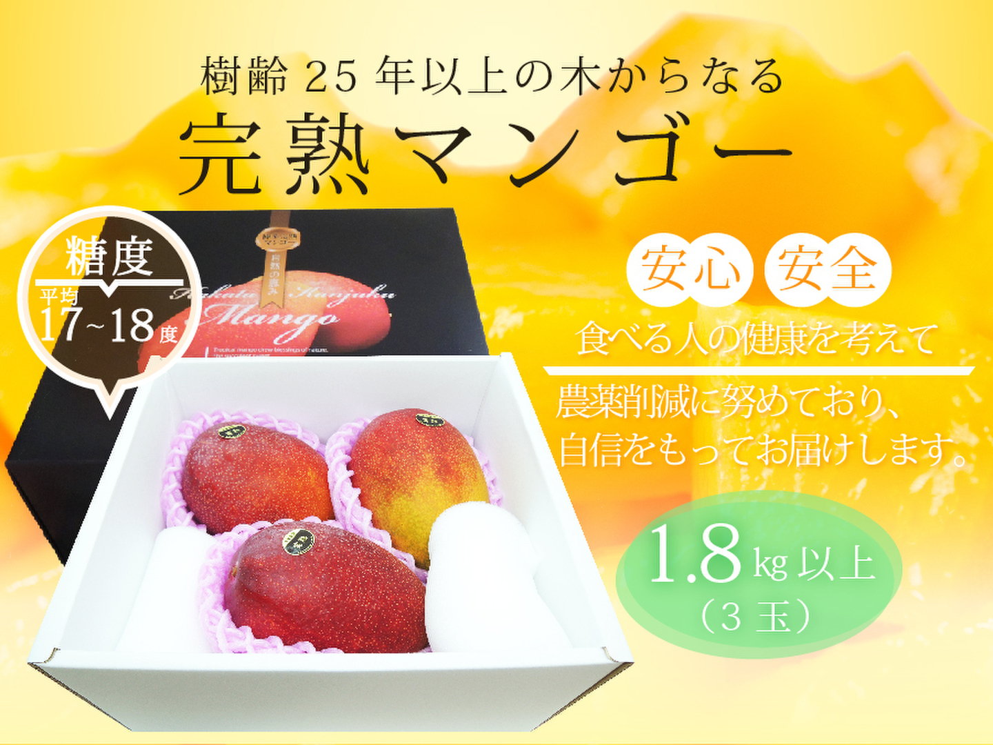 【食べチョク限定】樹齢25年以上の木からなる糖度約17~18度の完熟マンゴー(3玉:約1800g)【熨斗可能】【夏ギフト】【お中元】