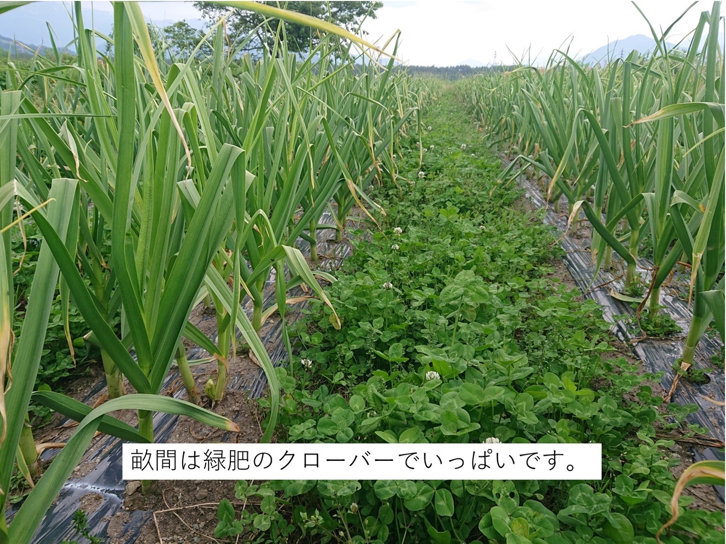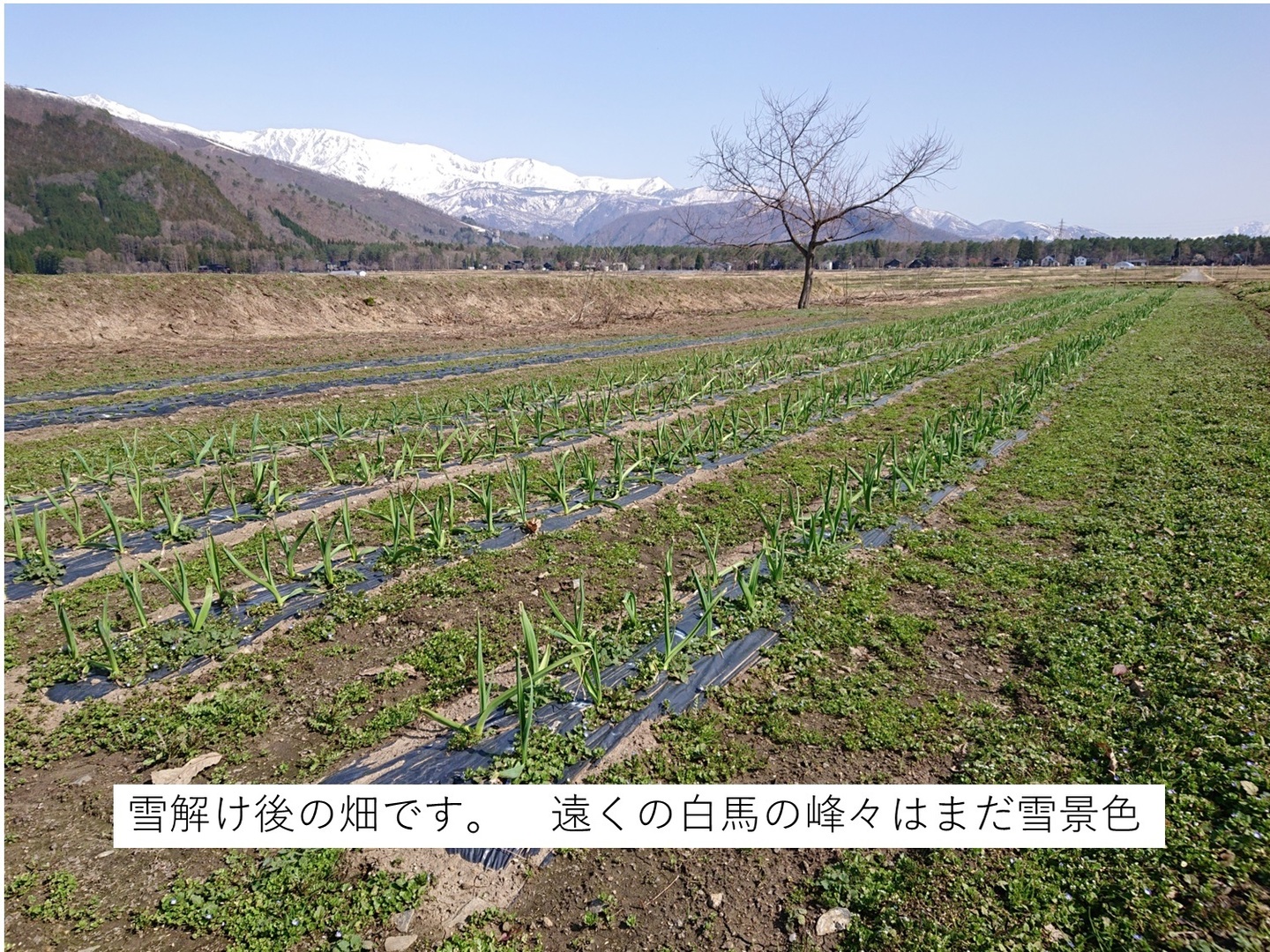 豪雪地帯白馬村の雪の下でゆっくりと春を待ちわびたにんにくは、爽やかな気候の訪れとともに大きく育ち、栄養満点な美味しいにんにくへと育ちました。