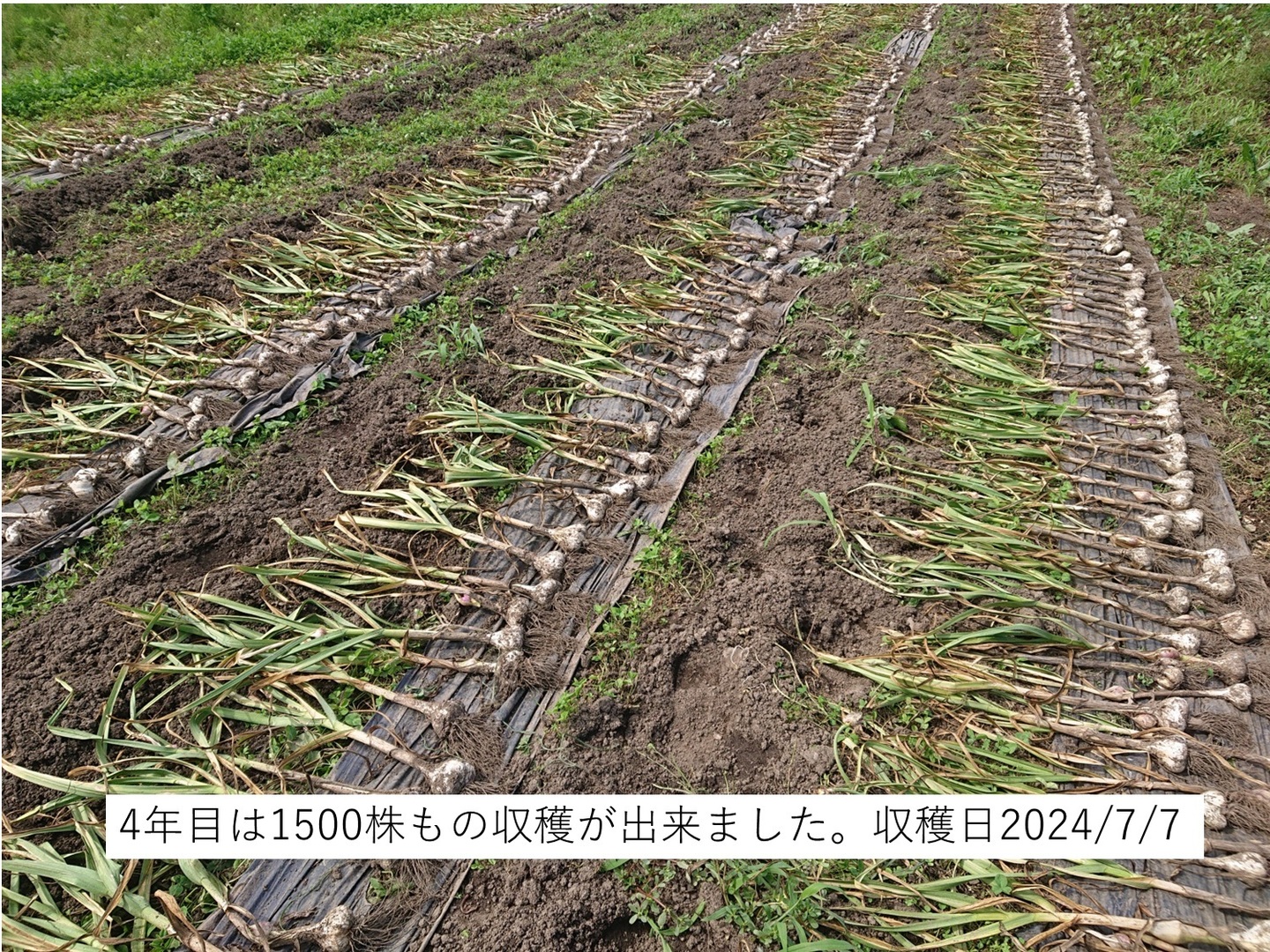 2021年に青森県の福地ホワイト6片種の種にんにく30株(180片)を植えて、栽培を繰り返して5年目の今秋には3000株を収穫出来るまでに増えました。