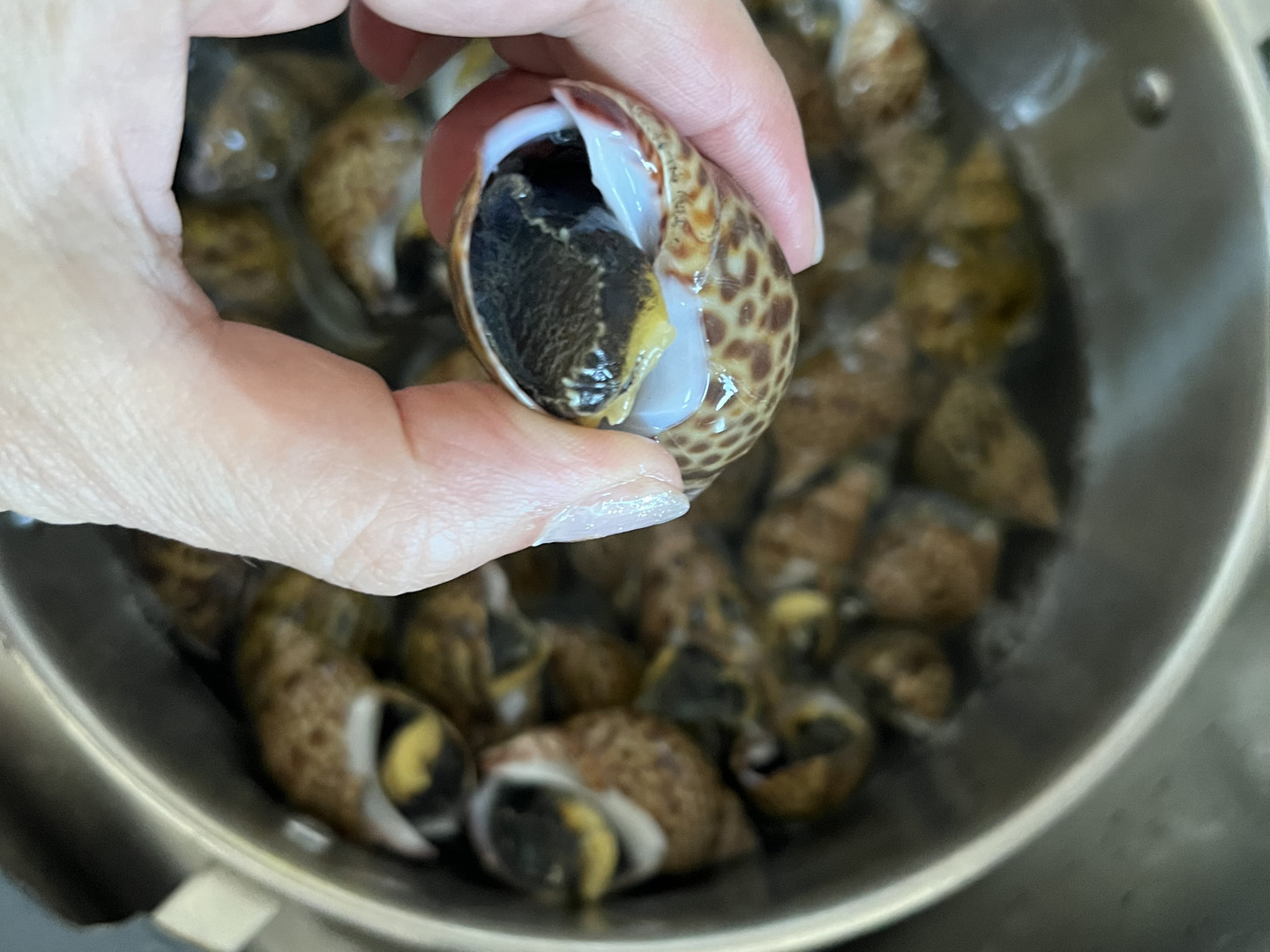 黒バイ貝は下茹ですることで臭みも抜け、煮つけのほかアヒージョなどのアレンジ調理にも適した食材です。