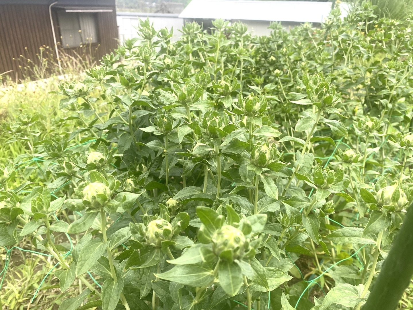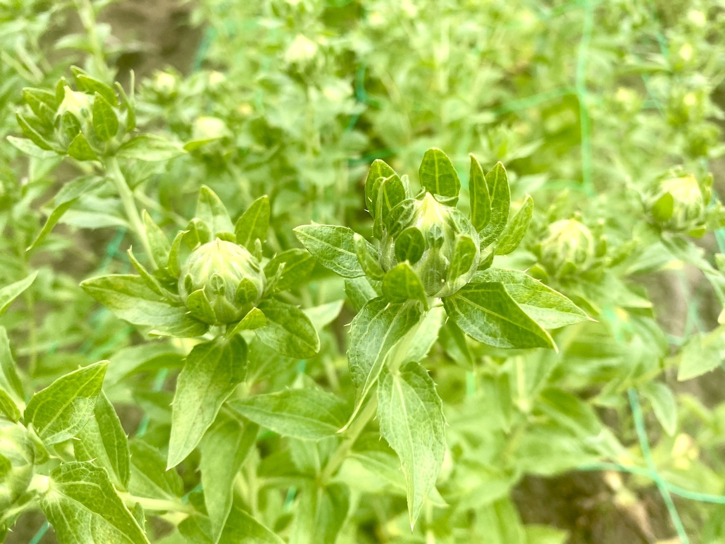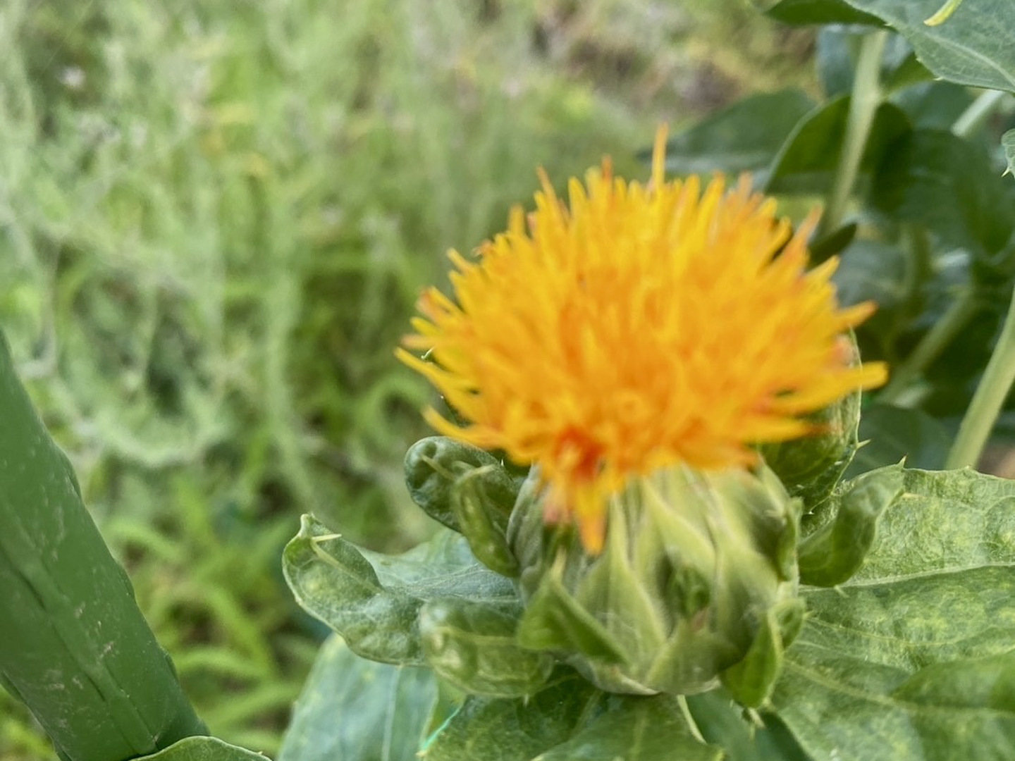 紅花(べにばな)はキク科の黄色から赤になる花を咲かせます。紅色染料や食用油の原料として有名です。