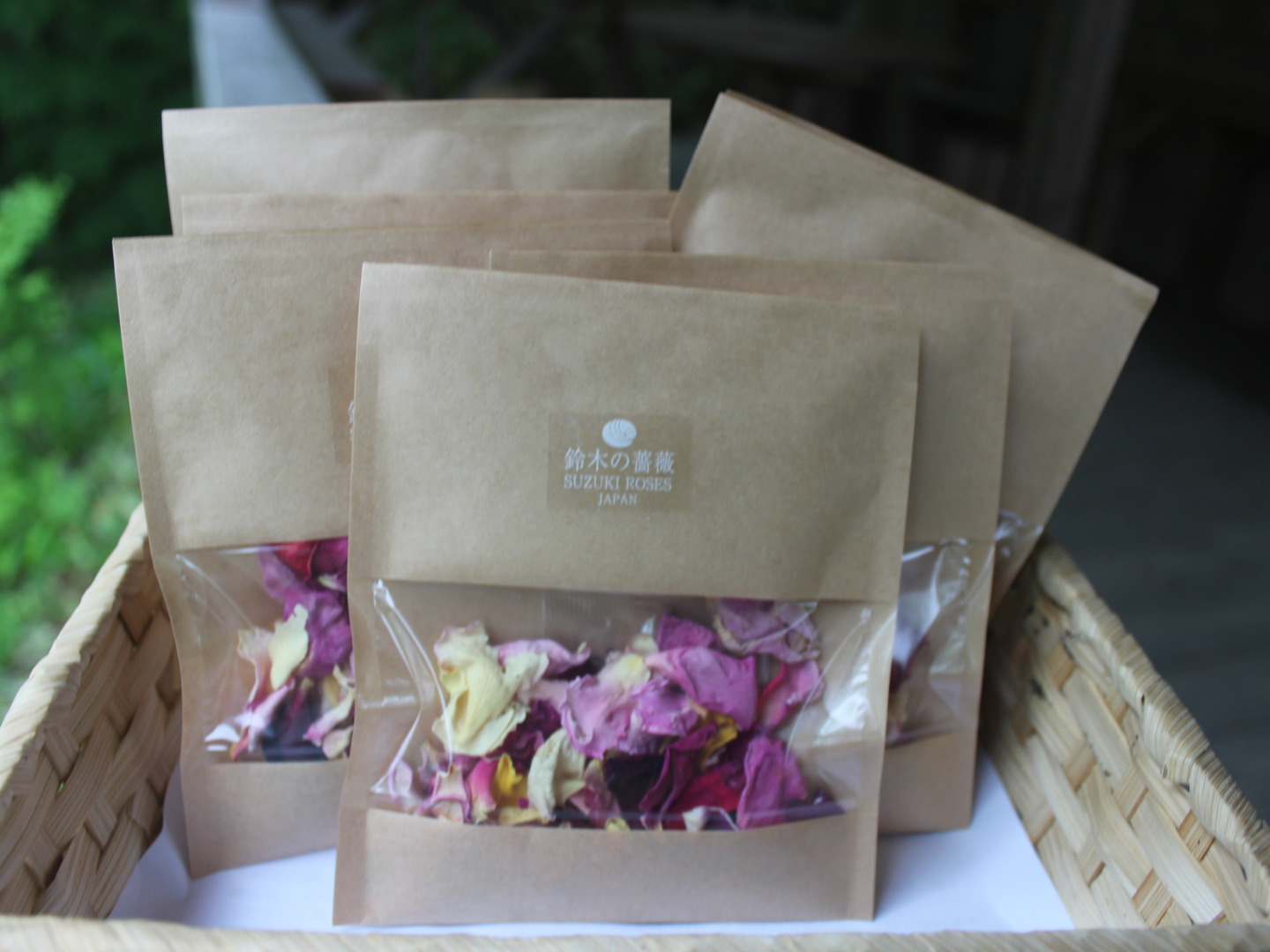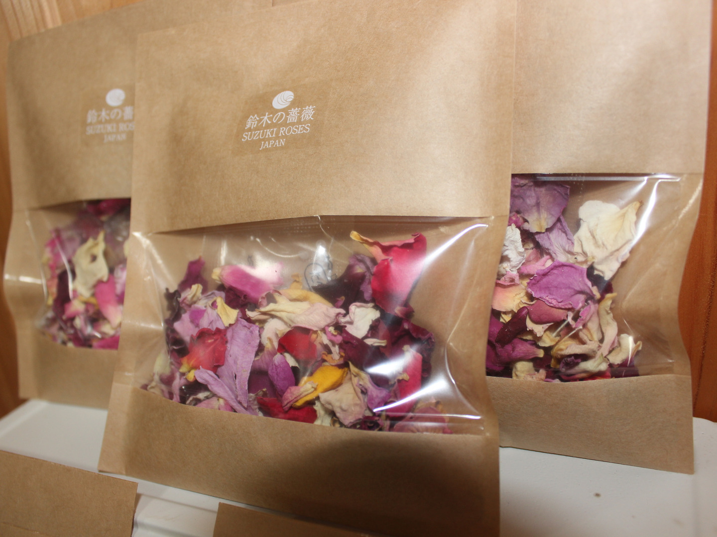 本物のバラの香りを閉じ込める為に、採取してすぐに解体した花びらを使用しております。