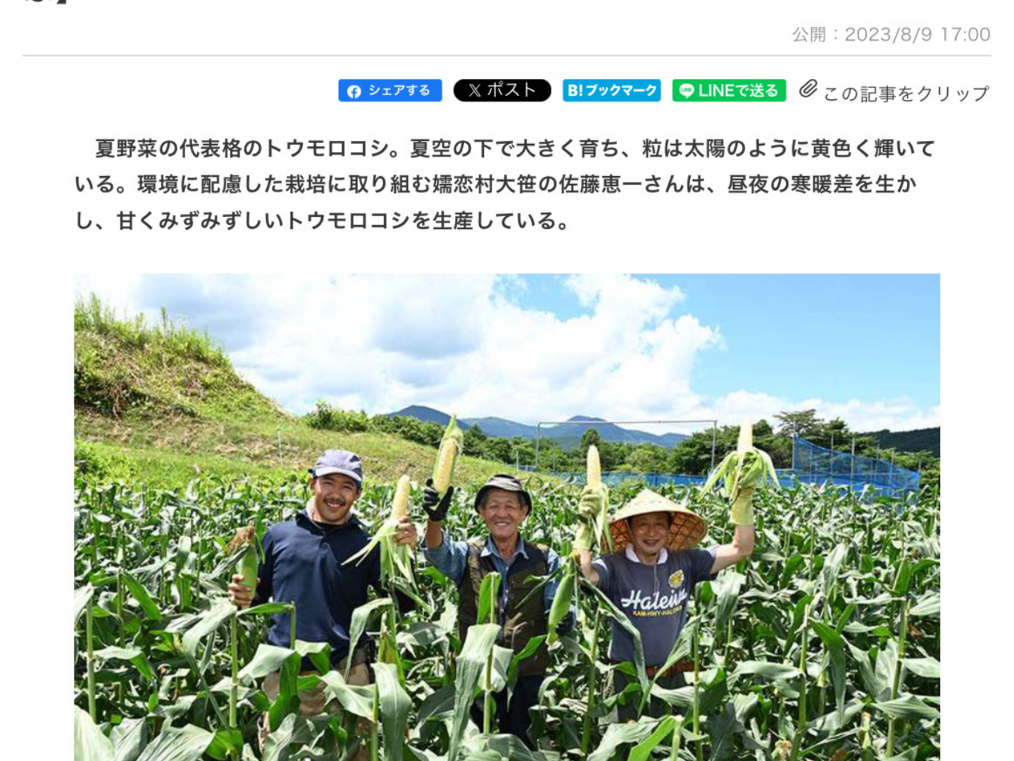 嬬恋村のとうもろこし: