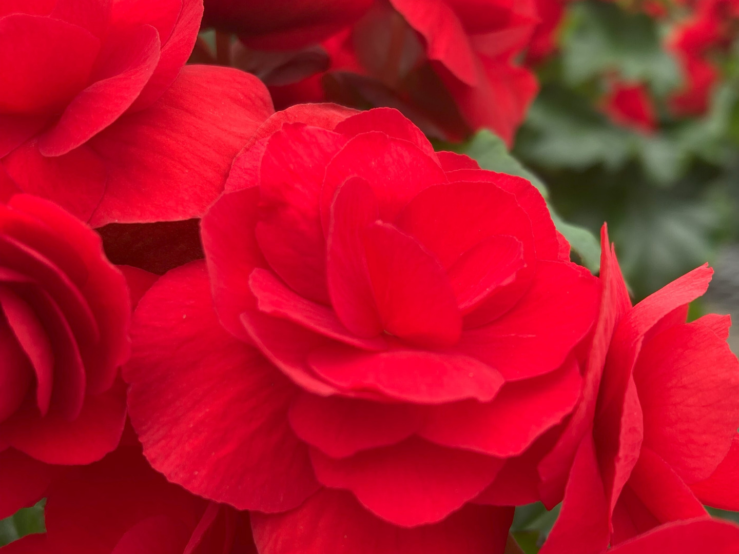 真紅の美しいベゴニアです。深紅の花びらが一層色鮮やかで、まるで宝石のような美しさを放ちます。【カルメン】の美しさは、あなたのお部屋にエネルギーと幸せを運んできます。