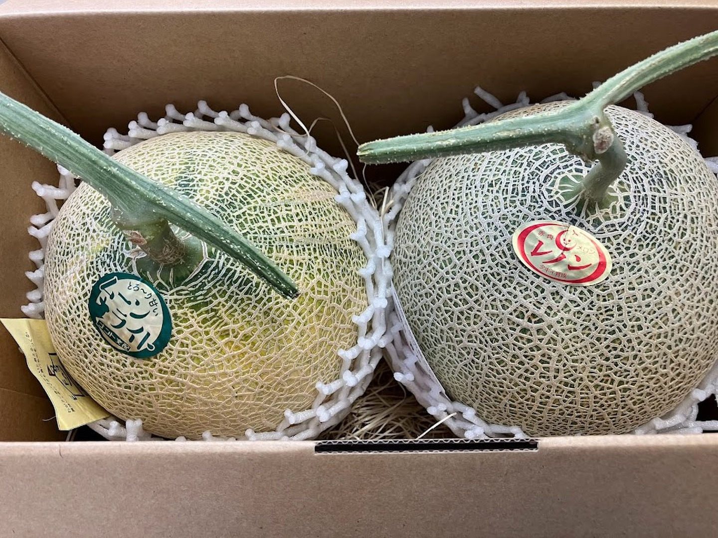 2種類の味わい!メロン レノン・ムーンライト 2玉化粧箱入り 1玉1.7kg以上