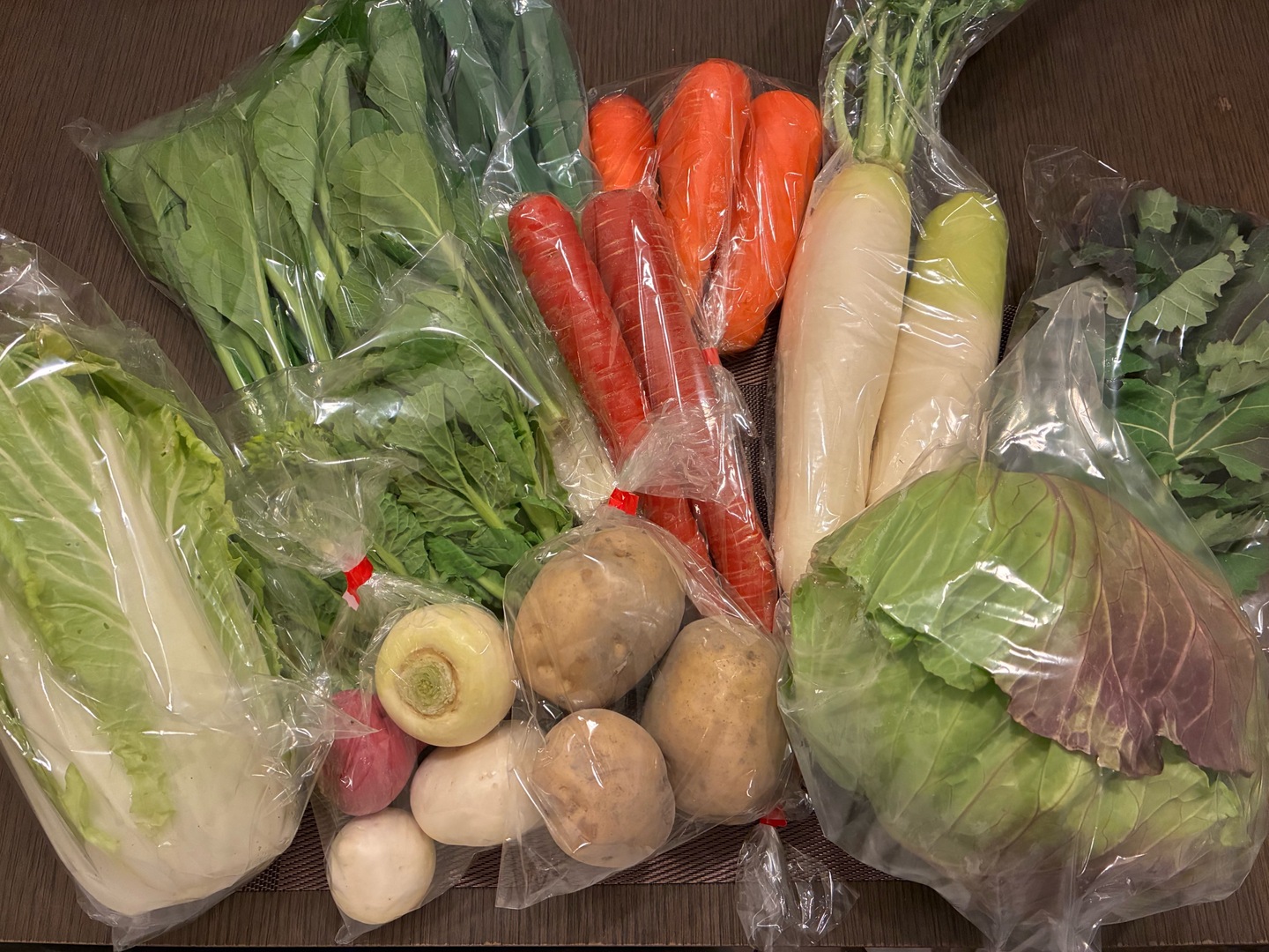 その時、畑にある季節のお野菜を詰め合わせいたします。秋のお野菜を詰め合わせてお送りさせていただきます。小さい白菜、大根、カブ類、ニンジン、小松菜、ジャガイモか里芋などの葉もの類と根菜類を予定してます(すこし変更ある場合もあります、7〜8種類はいります)送料の一部負担もあります。和歌山のお野菜ぜひ食べてみてください♪よろしくお願いいたします。