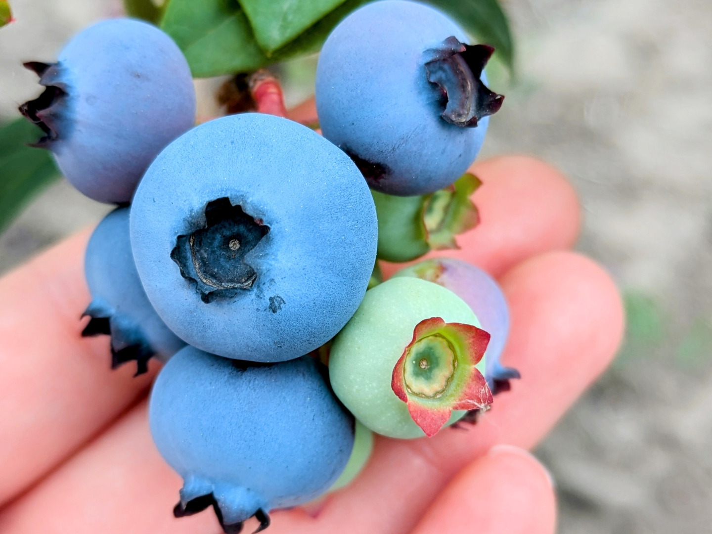食べごろのものから適宜収穫しているためお届けする品種は時期によって変化しますが、ハイブッシュ系ブルーベリーは酸味と甘みが調和しており、風味に富んだ系統です。