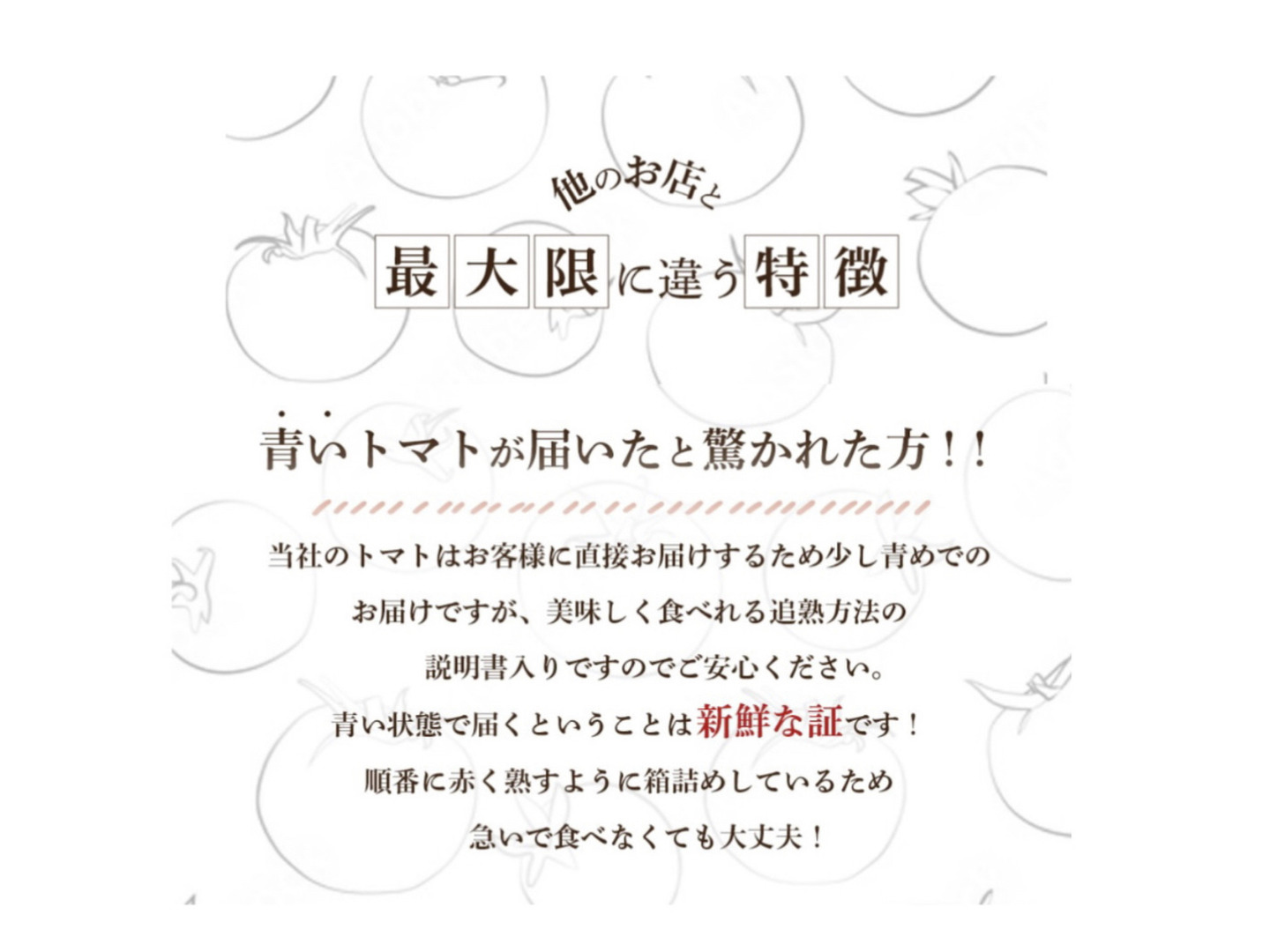 ●発送前には全てのトマトを検品しますが輸送の際揺れや衝撃によりどうしても多少の裂果や潰れが出てしまう可能性があります。