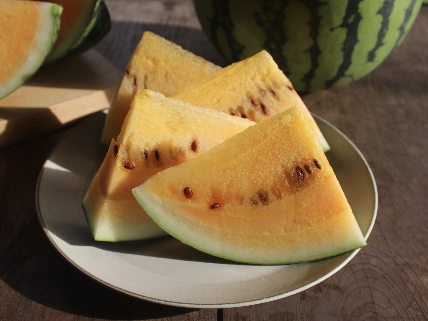 包丁を入れた際の黄金色に光る存在感とともに、ぜひこの希少な黄色スイカをご賞味ください。