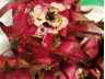 赤い果肉になります。品種については、数種混在しており、詳しい品種は把握しておりません。