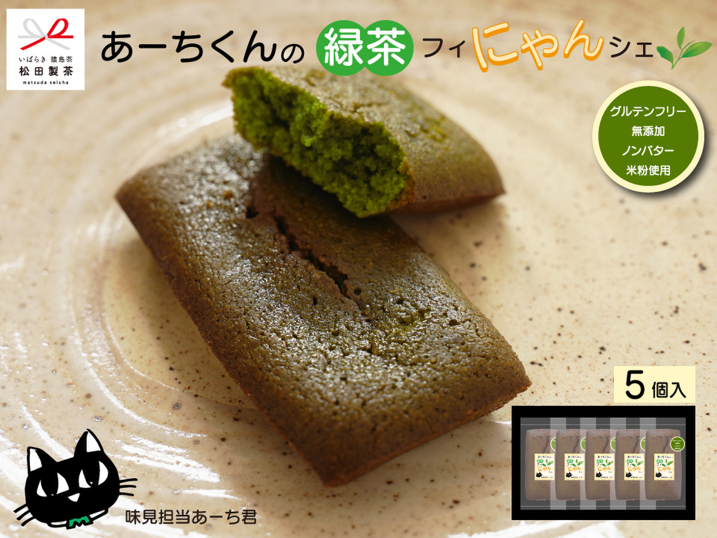 【お中元・ギフト】あーちくんの緑茶フィにゃんシェ/5個入り グルテンフリー 無添加 ノンバター 米粉使用 オリーブオイル 健康志向の方に 松田製茶  猿島茶 茨城県 GFT-052