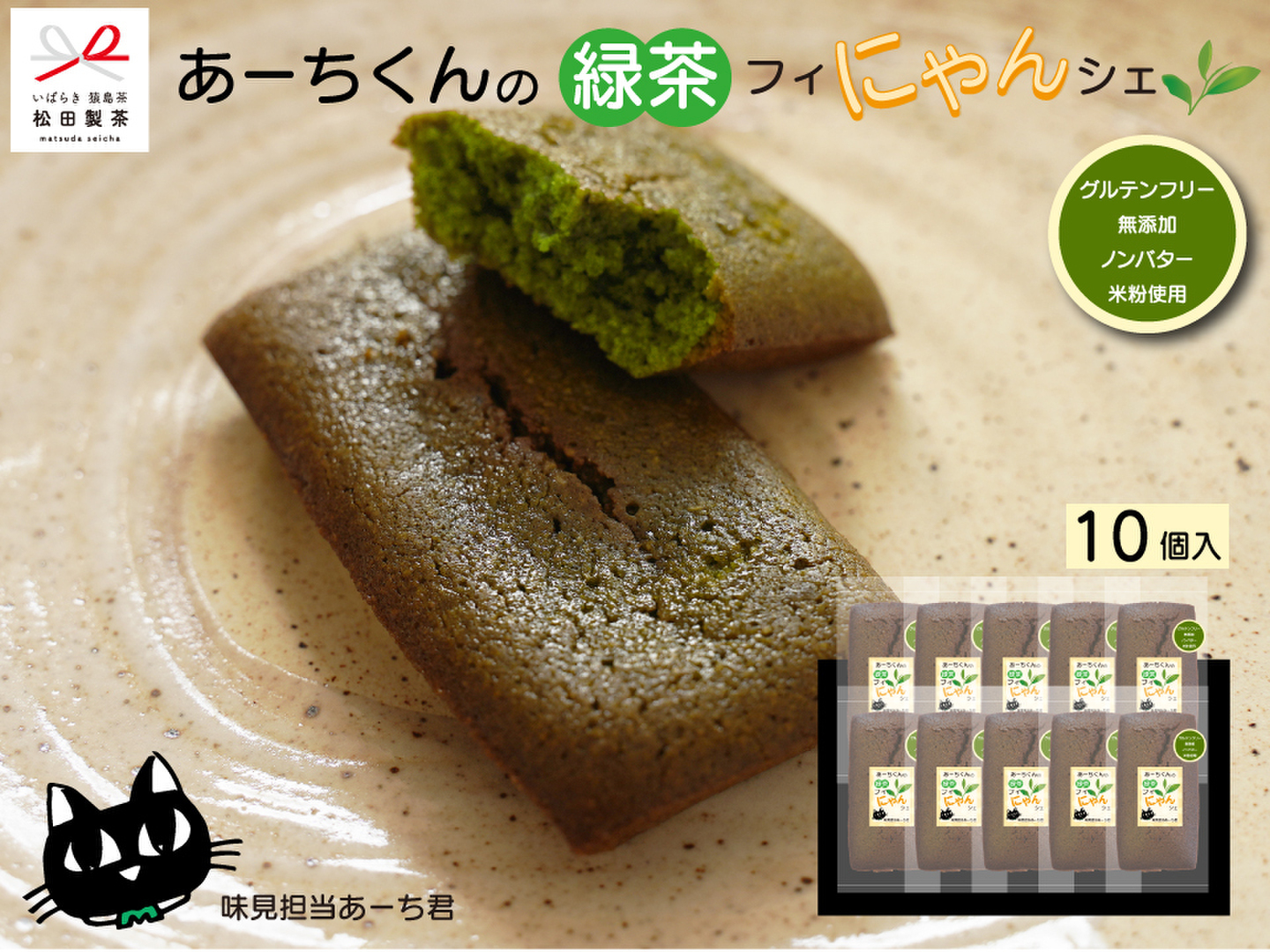 【お中元・ギフト】あーちくんの緑茶フィにゃんシェ/10個入り グルテンフリー 無添加 ノンバター 米粉使用 オリーブオイル 健康志向の方に 松田製茶  猿島茶 茨城県 GFT-053