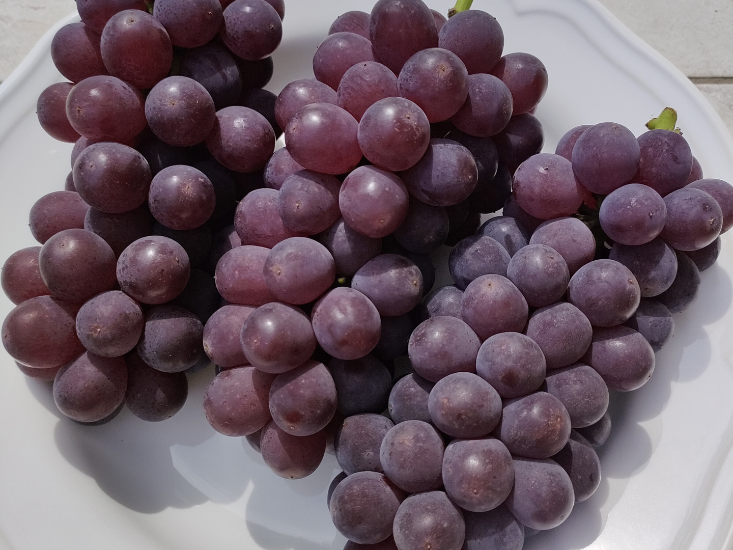 デラウェアを大きくしたような外観ですが、別の品種です。「レッドパール」と「マスカット・オブ・アレキサンドリア」の交配種になります。