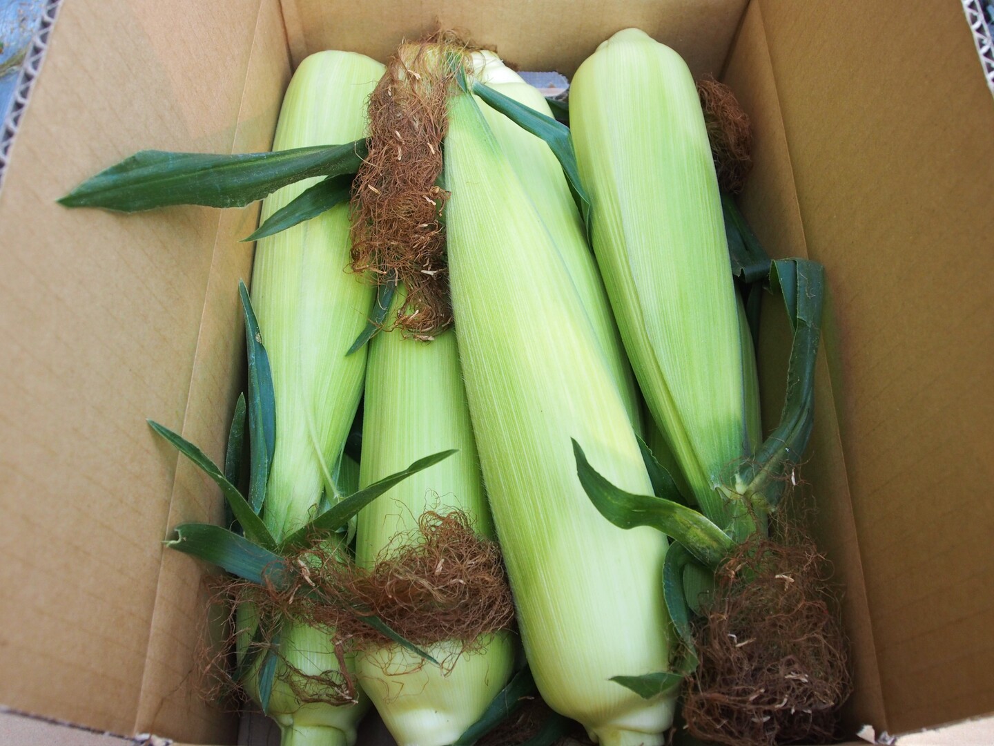 ※とうもろこしは虫食いが起きやすく穂先が食べられたり、葉の中に虫が隠れたりする場合があります。1本1本確認して箱詰めしておりますが、稀にご一緒してしまうことがあります。「農薬不使用の証拠」なのでご理解いただけると幸いです。