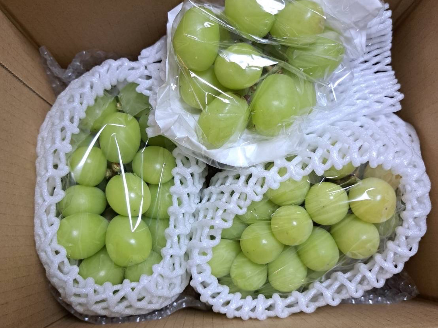商品について あわせ買い対象 同生産者の別の「あわせ買い対象」商品と一緒にご注文いただくと、送料をまとめてお届けできる場合があります。 内容 長野県産 ぶどう シャインマスカット約1kg(2房) 重量・容量 約1kg 発送 ヤマト運輸(食べチョク特別送料) 送料 ¥ 常温便 + ¥ 0 数量1点ごとに送料が発生します。 種別 果物 ぶどう シャインマスカット 産地 長野県 慣行栽培 果物 家庭用 シャインマスカット 長野県x果物 長野県xぶどう 長野県xシャインマスカット 商品説明 【味、特徴】大粒で食べ応えあり!!糖度20度前後と甘味が強く、それでいてさっぱりとした味わいでとってもジューシー!爽やかなマスカット香があり、一度食べたら止まらない!【栽培・生産のこだわり】しっかりと手間をかけ、適した時期に適した管理をする事での最良な品質のぶどう作りを意識しています。シャインマスカットは近年見た目ばかり意識されすぎて、色は綺麗だが味のない味無し果など食味の劣るものが多く出回ってしまうようになりました。当園は黄色く熟してでも糖度がしっかりのった食味第一のぶどうを提供します。また、直販の最大の売りは鮮度!!朝採れ当日発送で送らせていただきます。【産地の特徴】長野県千曲市で育った露地シャインマスカットです。寒暖の差が大きく、中山間地域から千曲川沿いに広がる肥沃な土地では昔から稲作、花卉、果樹栽培が盛んです。【注意点】※シャインマスカットは緑色が一般的ですが、そこを重視すると甘味や味が乗ってない場合があります。熟してくると黄緑、黄色となり甘味も増してきます。当園では食味を第一に考慮してますので、黄緑や黄色いものも発送させていただきます。※ 当園は新規就農したばかりで農家としてはまだまだの身ですが、たくさんのお客様に喜んでいただけるよう頑張ります。※稀に酸味のある粒や種が入ってしまう事もあります。※細心の注意を払い検品し梱包させていただきますが、配送時の衝撃などで傷や裂果が内側の見えない部分にある場合があり、また脱粒がある場合があります。種なしぶどうは、種がないため特に、粒が落ちやすい特徴があります。※露地栽培という事もあり、天候の影響もありますので、成育状況に応じて順次発送させていただきます。以上の点をご了承いただいた上でご注文いただけると幸いです。 もっと見る この商品のことをお友達にもシェアしませんか ポスト シェア