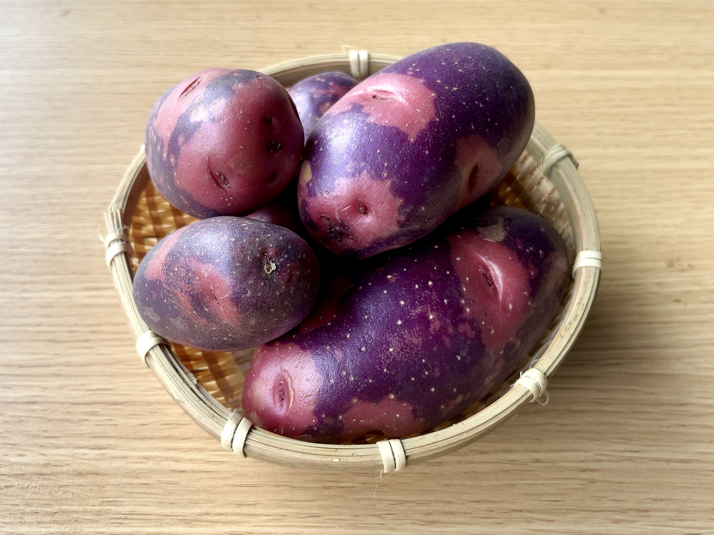 【洗い済】ねっとり食感の派手なじゃがいも「グラウンドペチカ(デストロイヤー)」 2キロ箱
