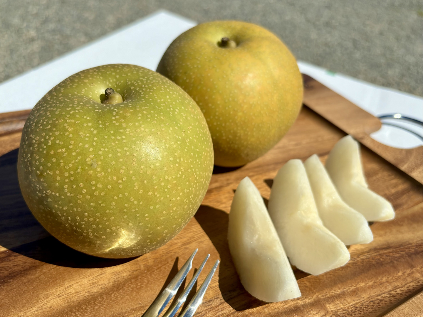甘みの中にほどよい酸味があり、果汁の多い梨。