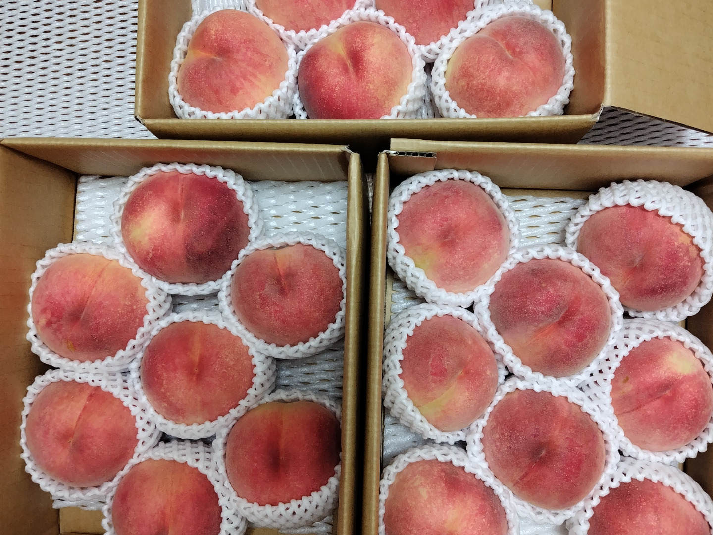 - 届いた時は硬いですが、追熟するととろける食感の桃になります