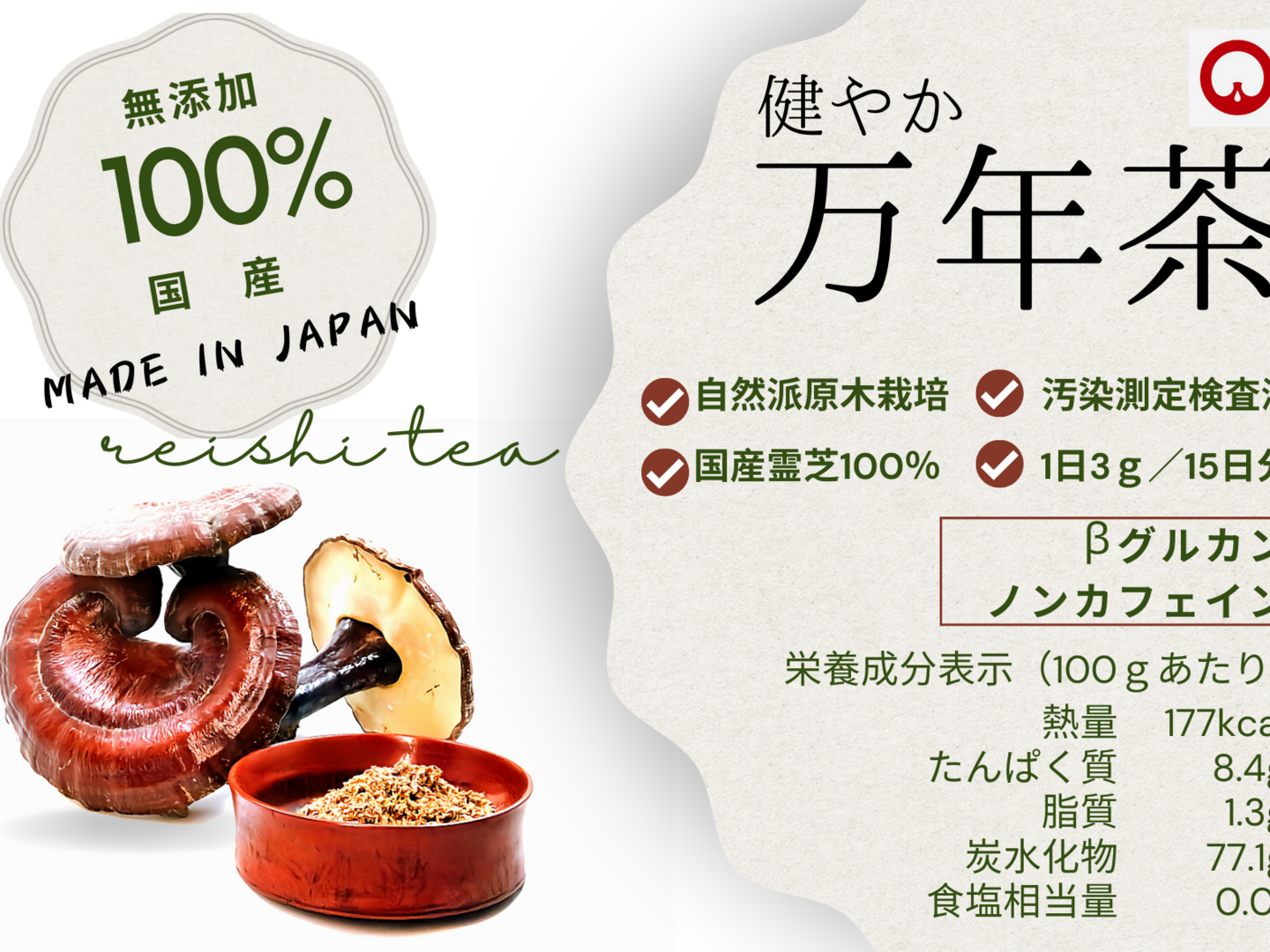 国産霊芝100% ※栽培期間 農薬不使用(近隣の田畑によるドローン散布などによる二次汚染などによるダブルチェック済 残留農薬300種検査・放射セシウム検査)