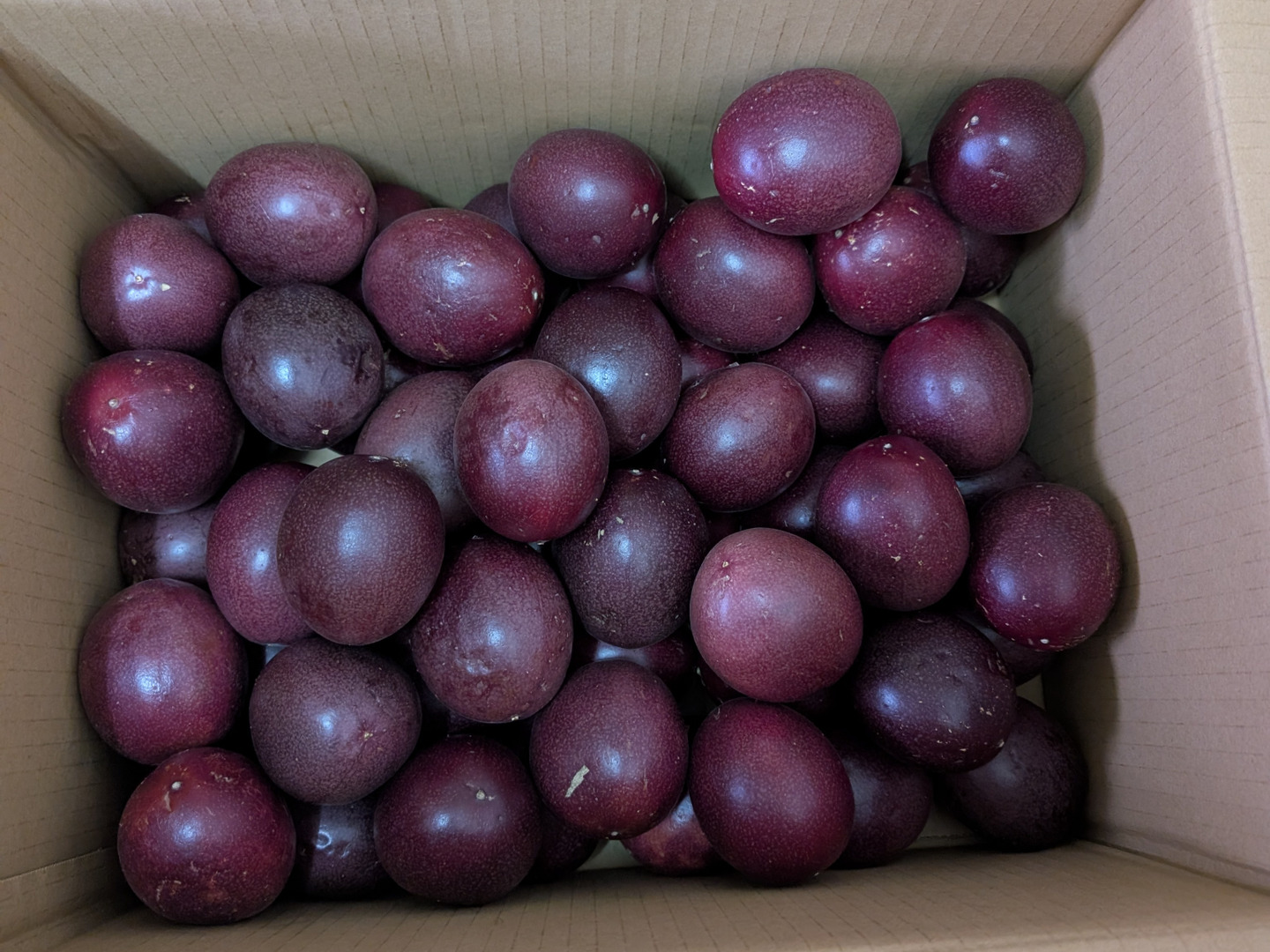 南国の香りと爽やかな甘酸っぱさ、独特の食感が特徴のパッションフルーツ。トカラ列島の太陽の恵みを受けてひとつひとつ丁寧に育てられ、最後まで栄養を行き渡らせるために、落下防止用のクリップで留めて樹上で完熟させました。