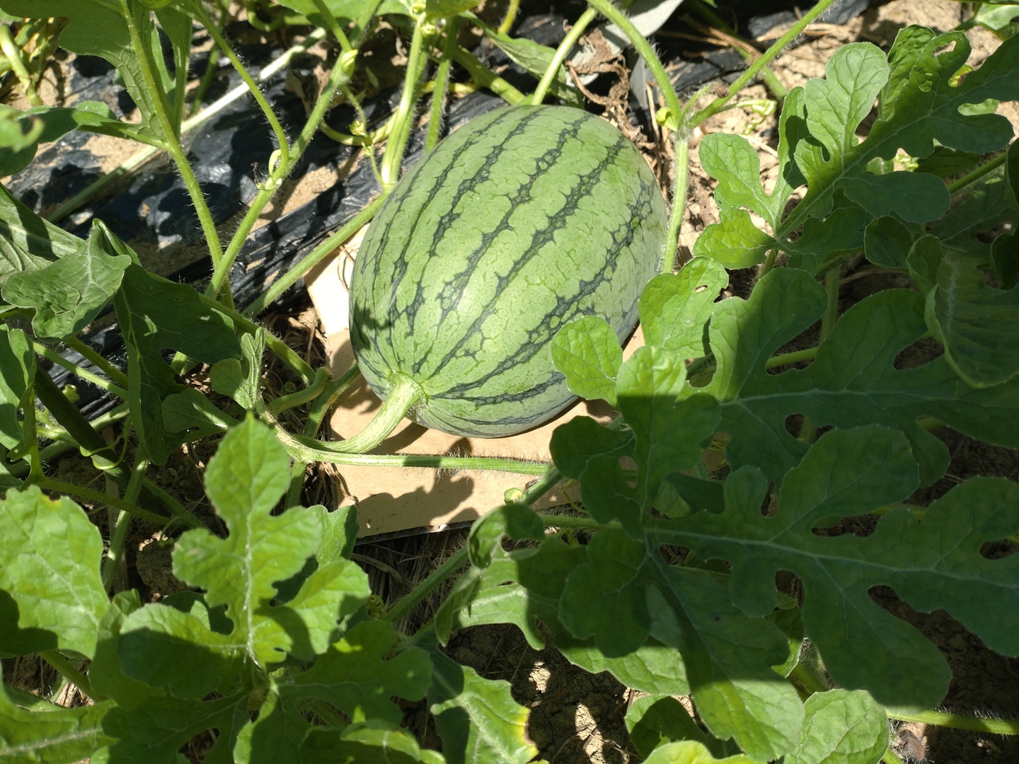 【単品🏣ゆうパック】スイカ🍉Sサイズ☆俵型 ☆農薬、除草剤、化学肥料不使用☆横幅(長い方)約20〜25cm 直径約15cm〜18cm