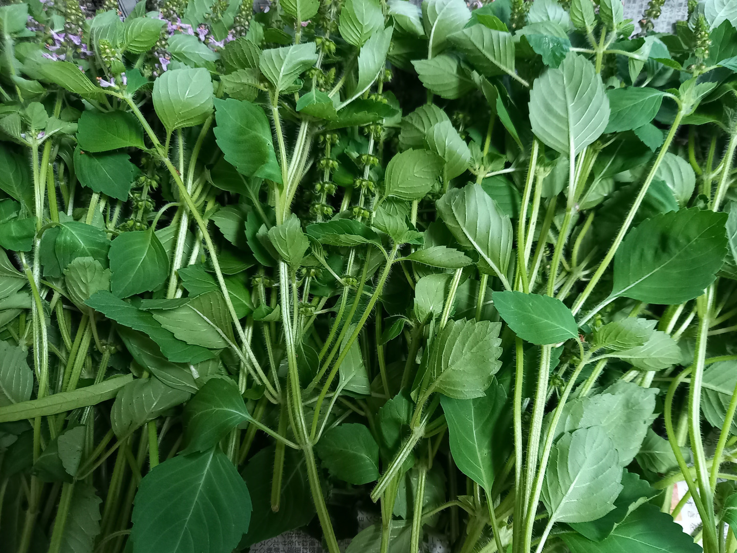 栽培期間中、化学合成農薬不使用です。 有機肥料のみで作った、穂付きのホーリーバジルです。