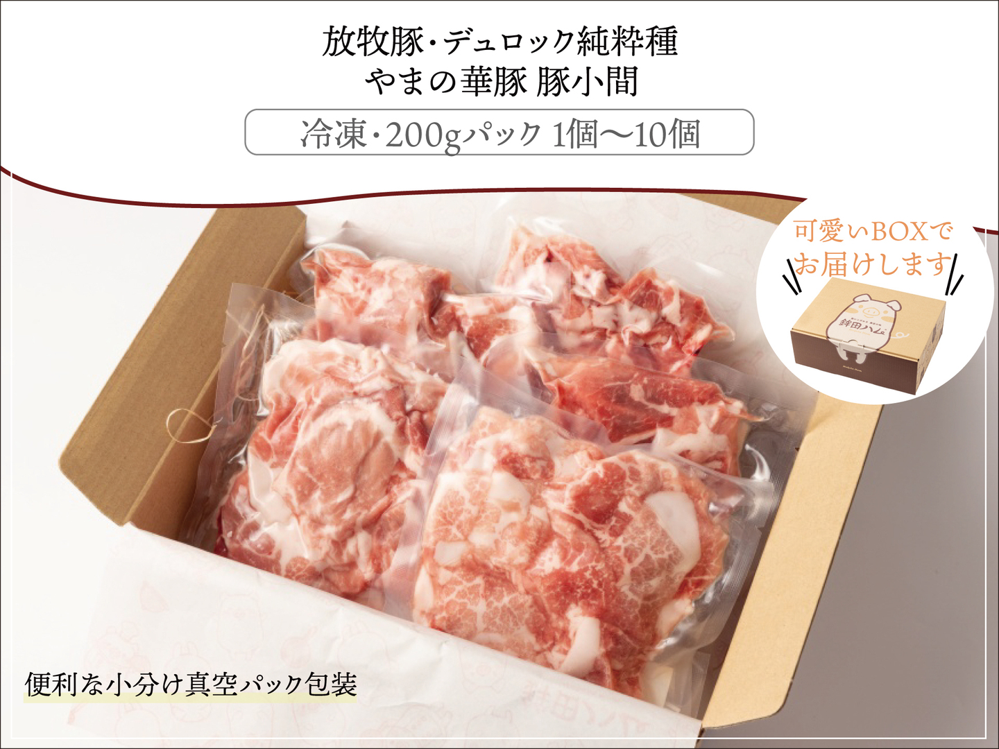 【特別価格】〖放牧豚・デュロック純粋種〗ウデモモ豚小間(冷凍)真空パック200g×8