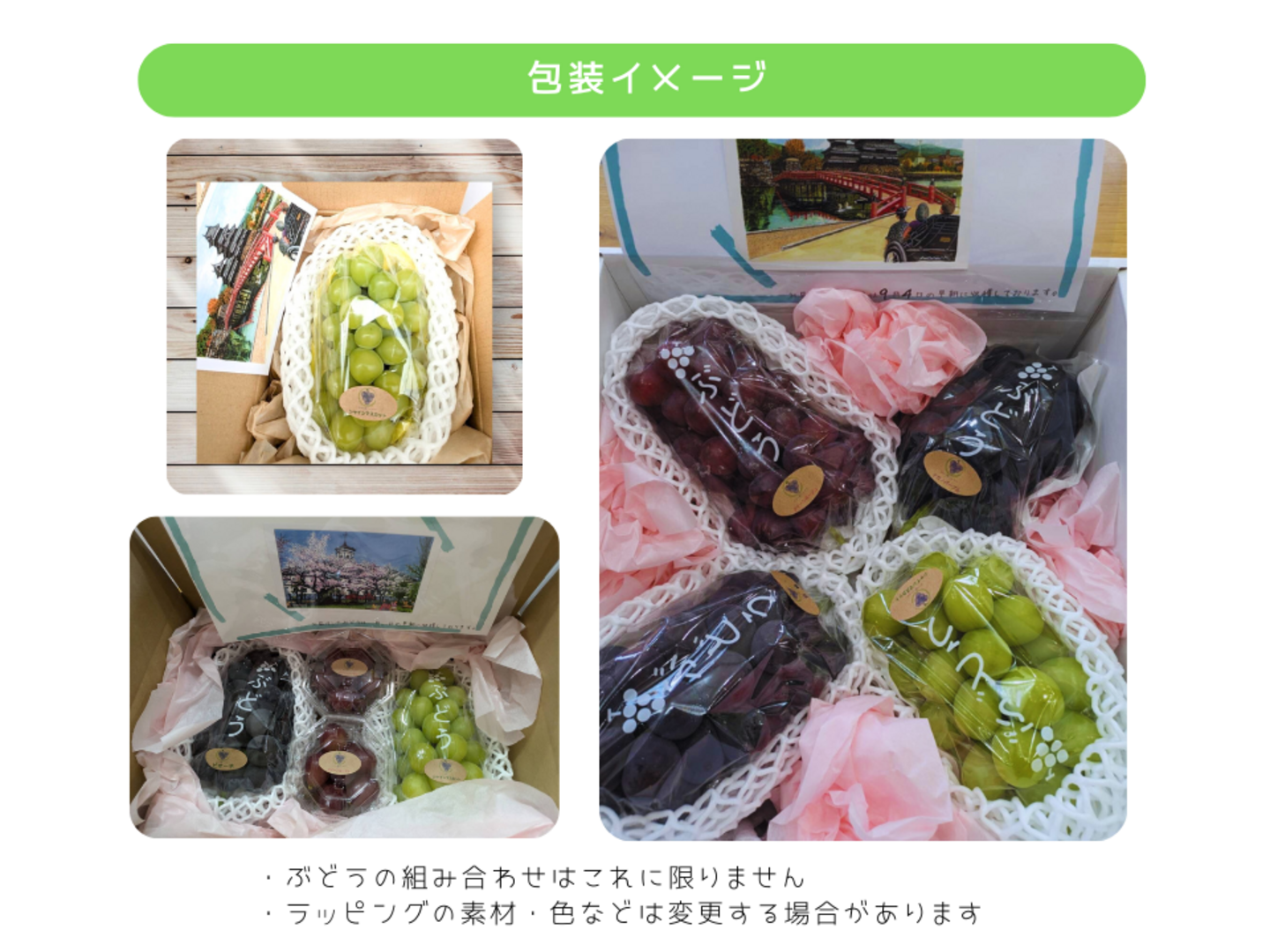 ・ぶどうの栽培には最大限の力を注いでおりますが、農産物であるため、形、大きさ、味わい、糖度などが必ず同じものをお届けすることはできません。