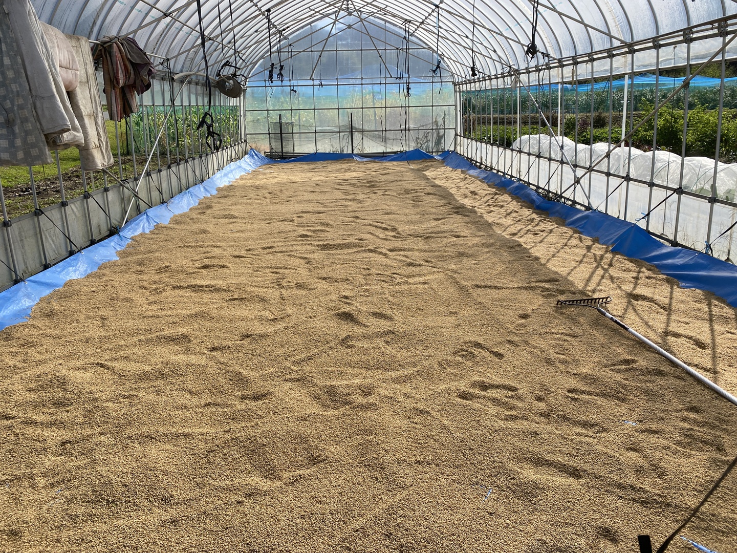 - 2 自家製燻炭、豆殻、糠、マコモを自然に返しています。