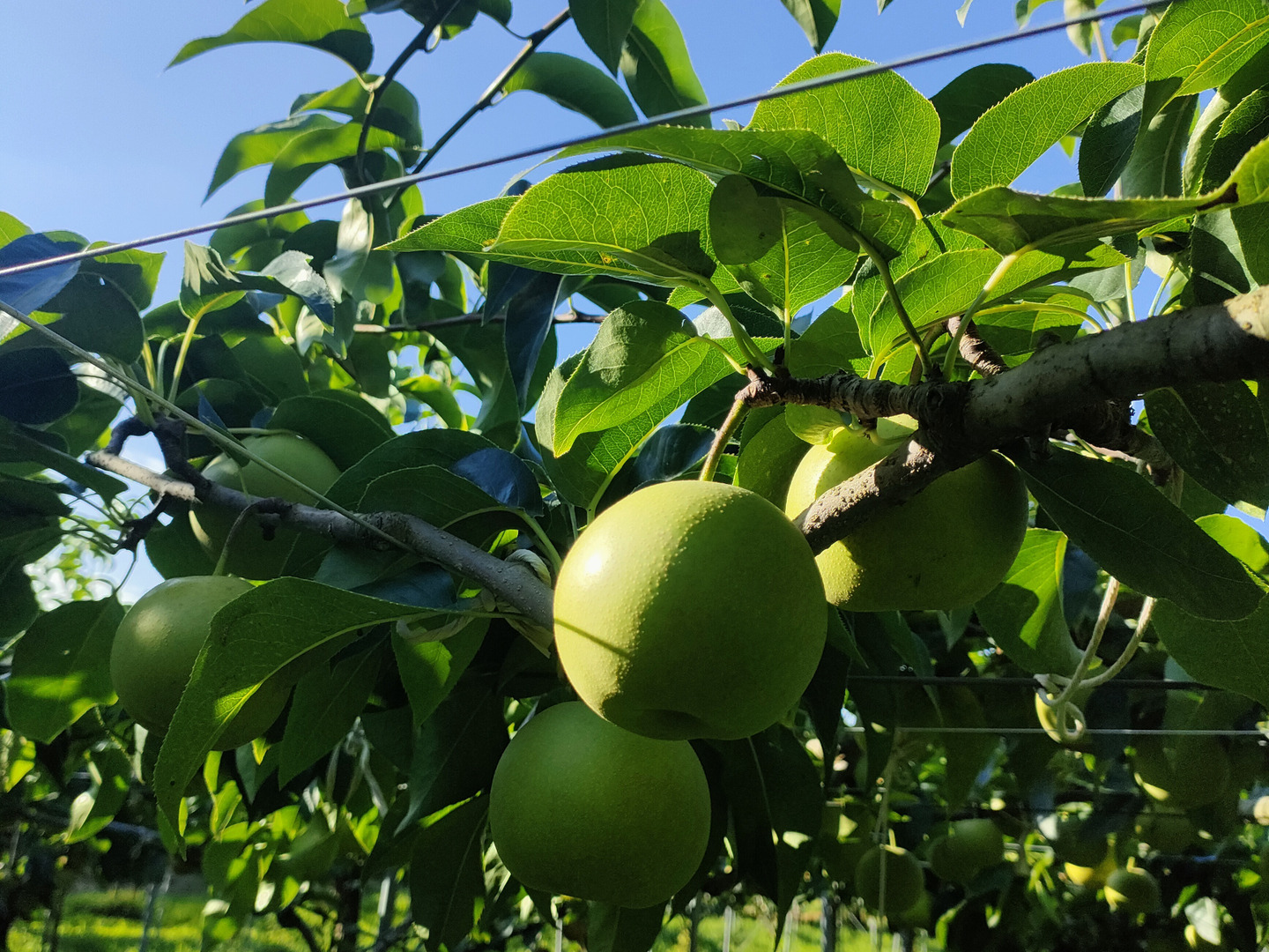 最低限の肥料で、植物の力を活かした仕立て方、栽培方法を目指しています。太陽の光が、葉や果実にいっぱいそそぐように枝の配置やいらない葉の整理をしています。