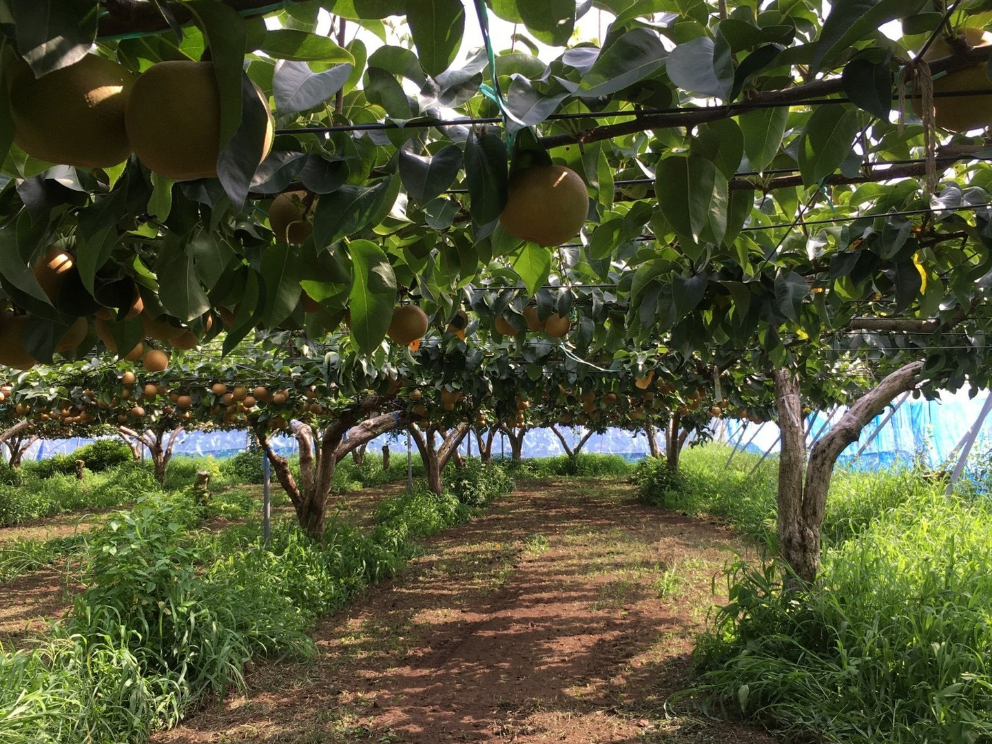 当梨園では収穫する果実に養分が集中するようにしっかり摘果を行い、大玉に仕上げています。