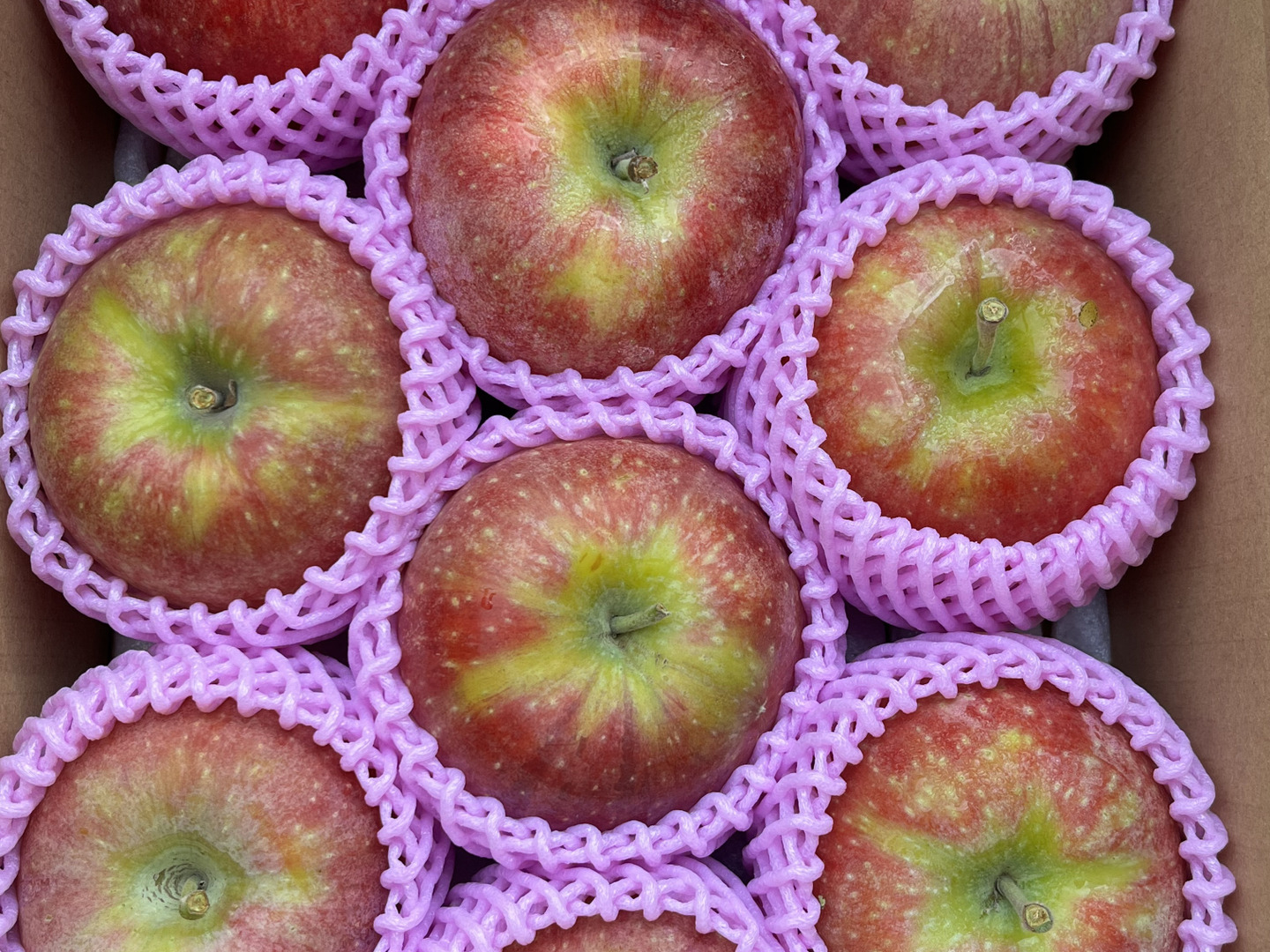 ※なるべくきれいな状態のりんごで荷造りする予定ですが、一部、りんごの表面の枝すれや、色むらや、サビなどがあるりんごなどが入る可能性がございますのでご理解くださいますようお願いします。